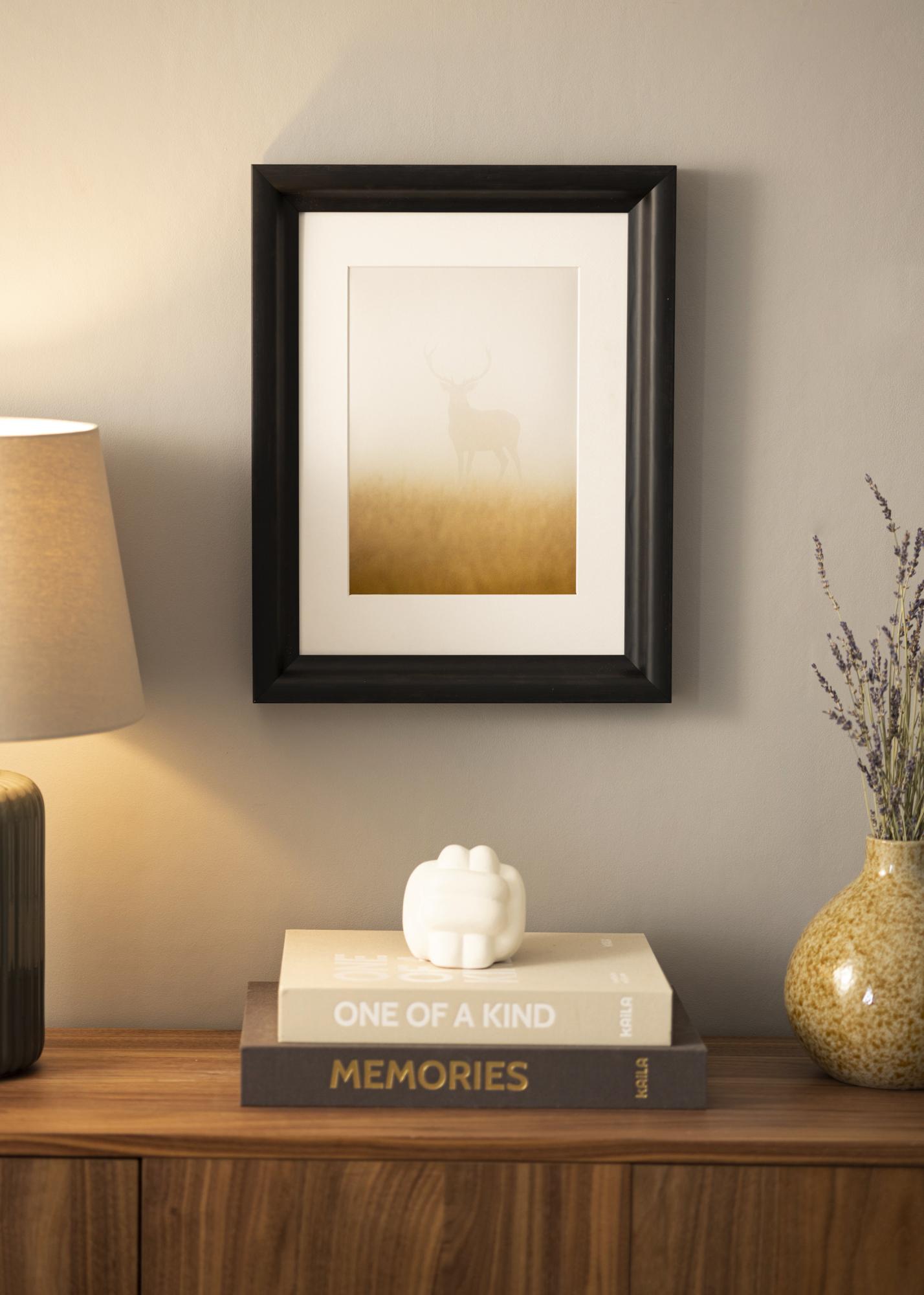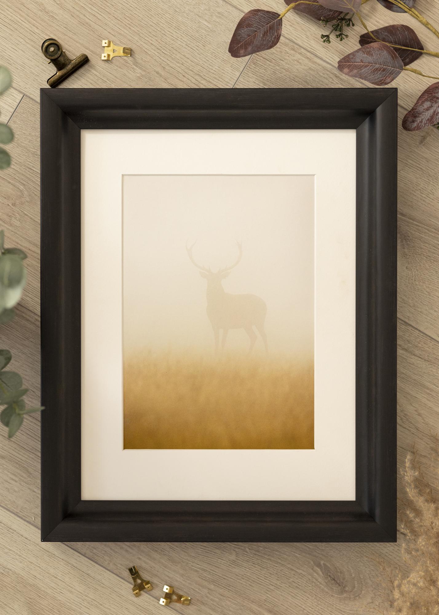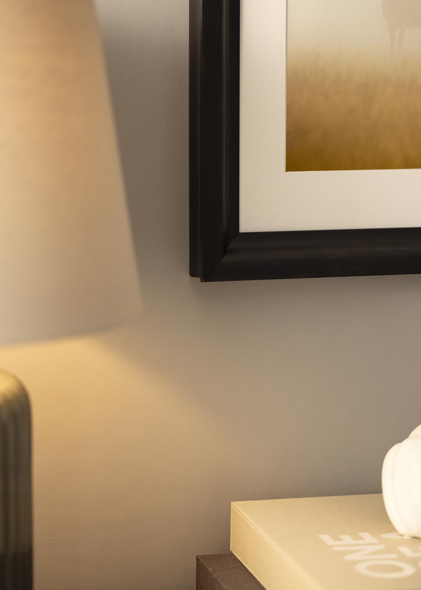 moldura para quadros tradicional numa cor castanha preto escuro que está mais próxima do preto do que do marrom. Uma excelente escolha quando procura uma moldura personalizada em um tom escuro onde a estrutura da madeira é visível.