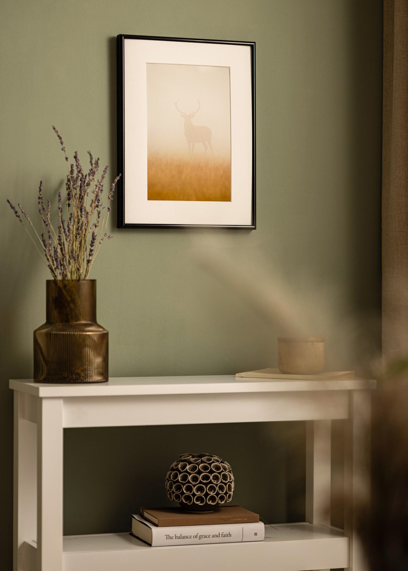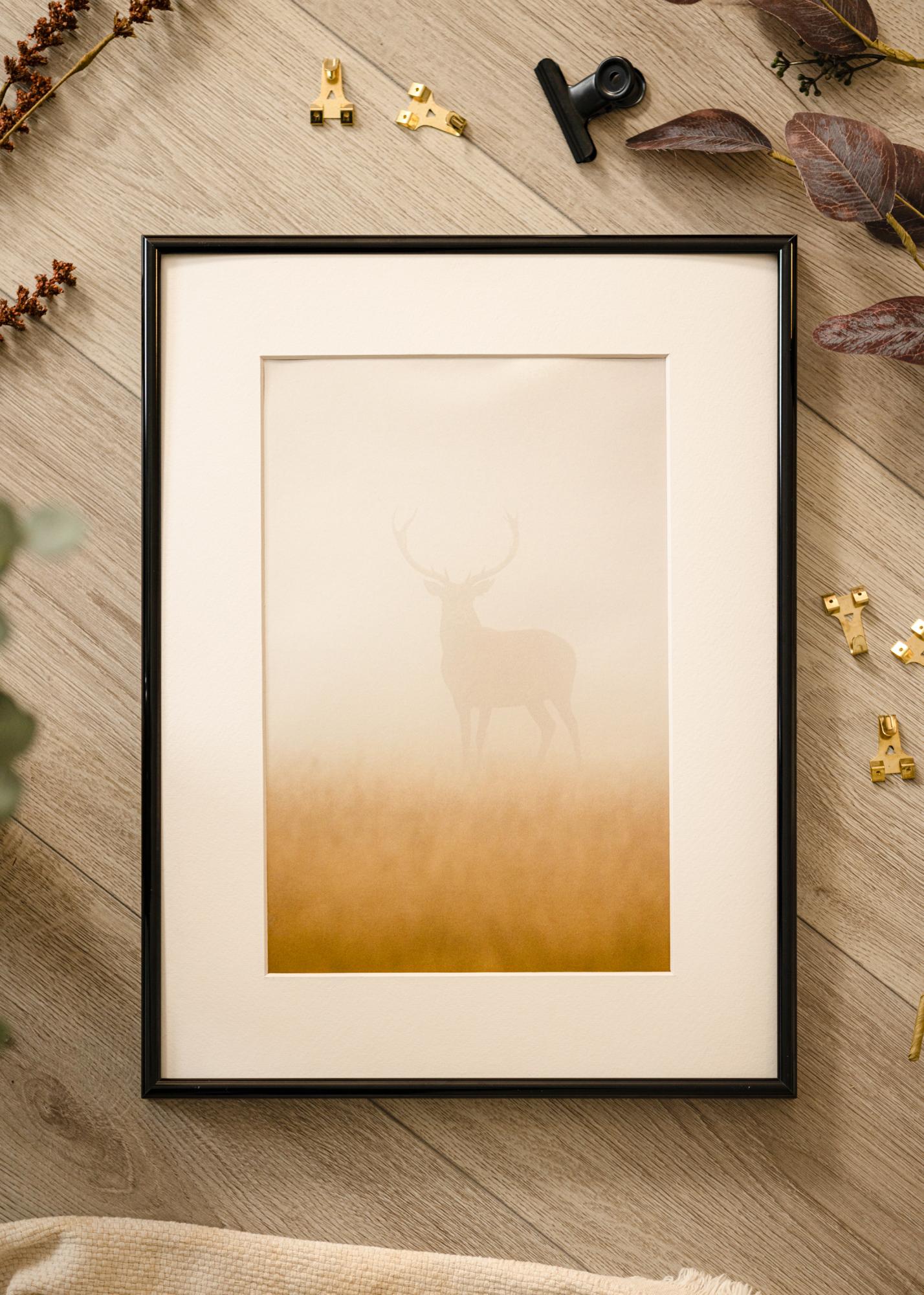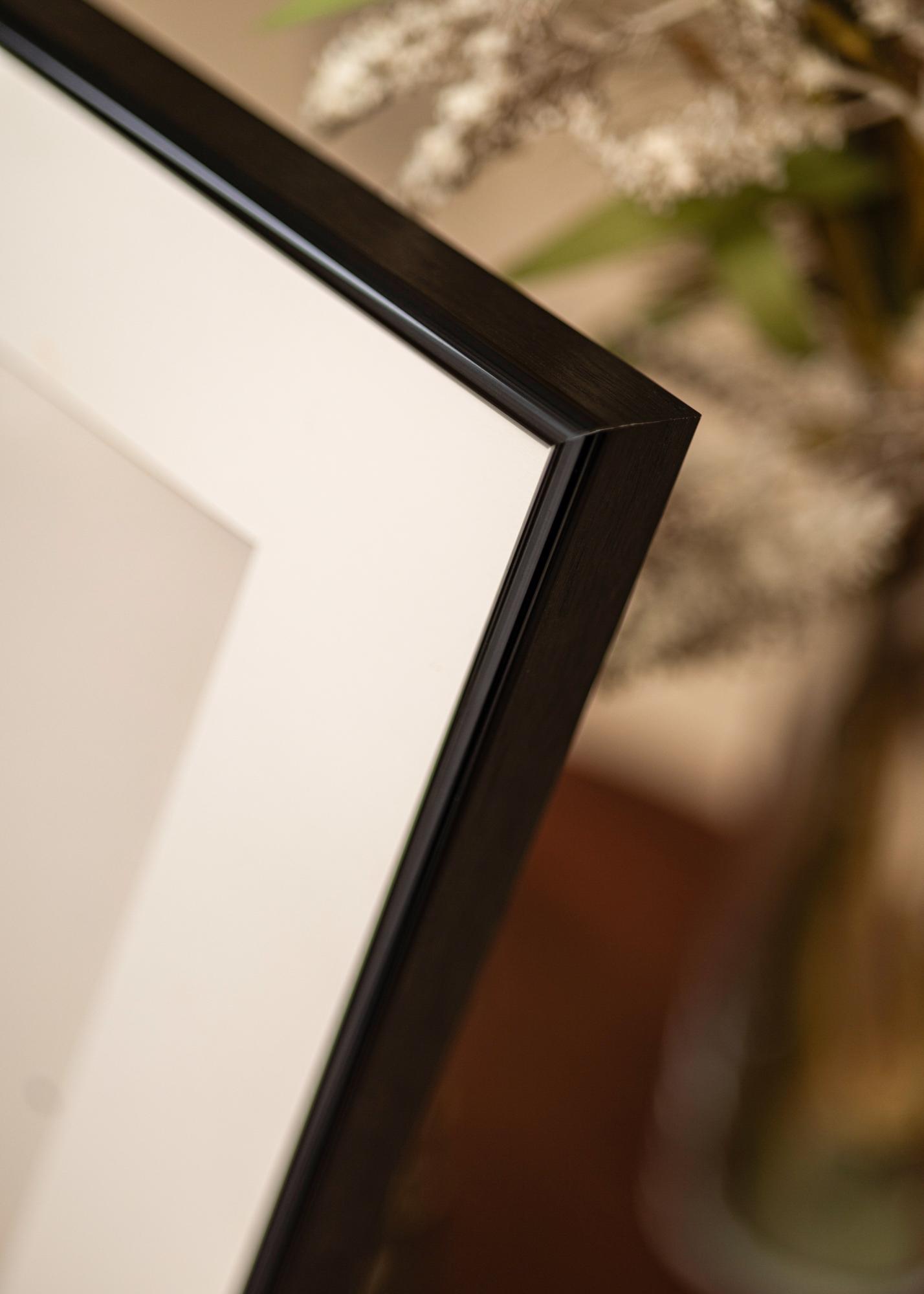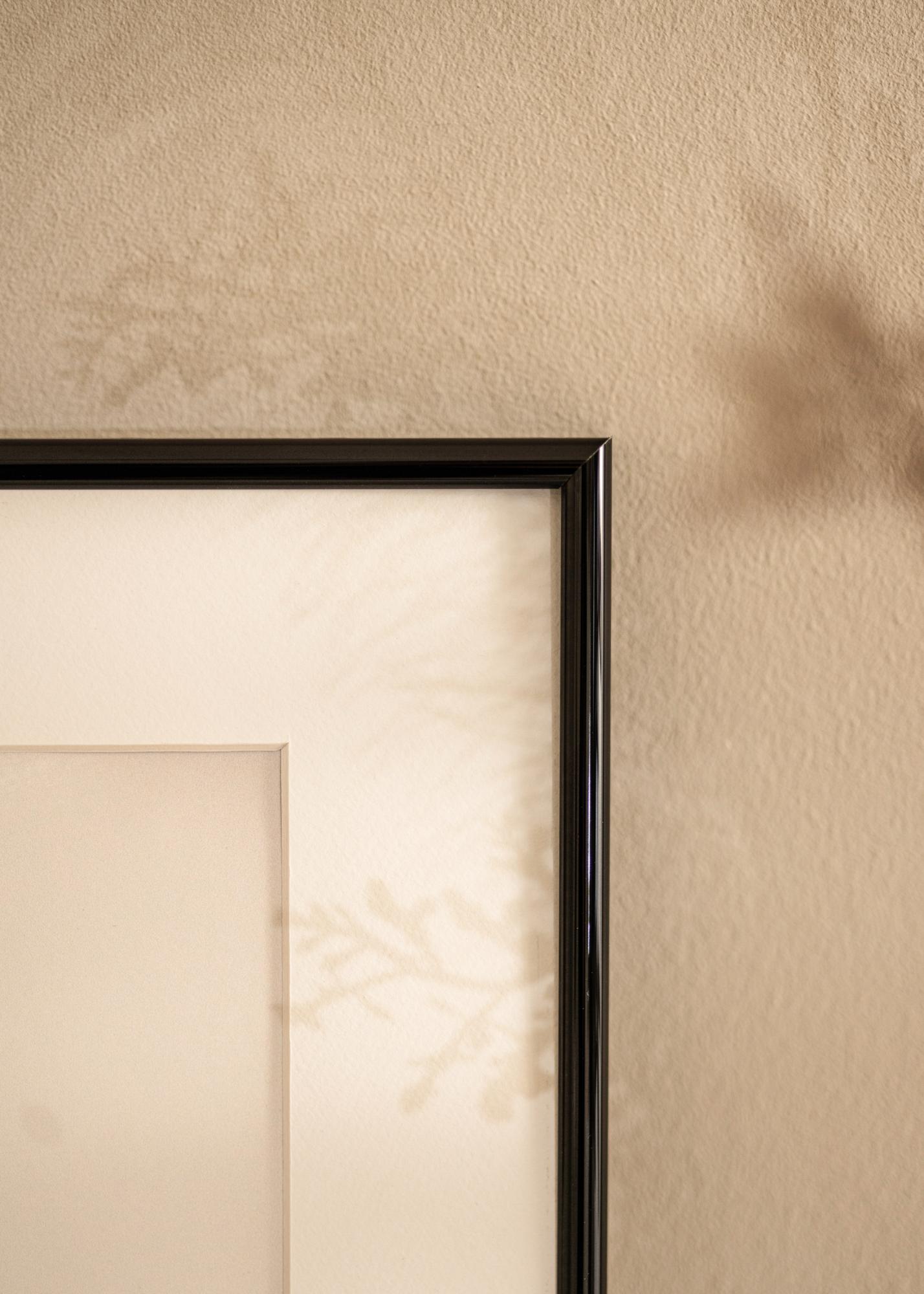 Moldura moderna de alto brilho em preto com laterais escovadas que possuem um perfil profundo de 26 mm. Isso faz com que a imagem se destaque da parede e crie um efeito 3D incrível. Perfeita quando procura uma moldura simples que dá às suas imagens um emolduramento elegante.