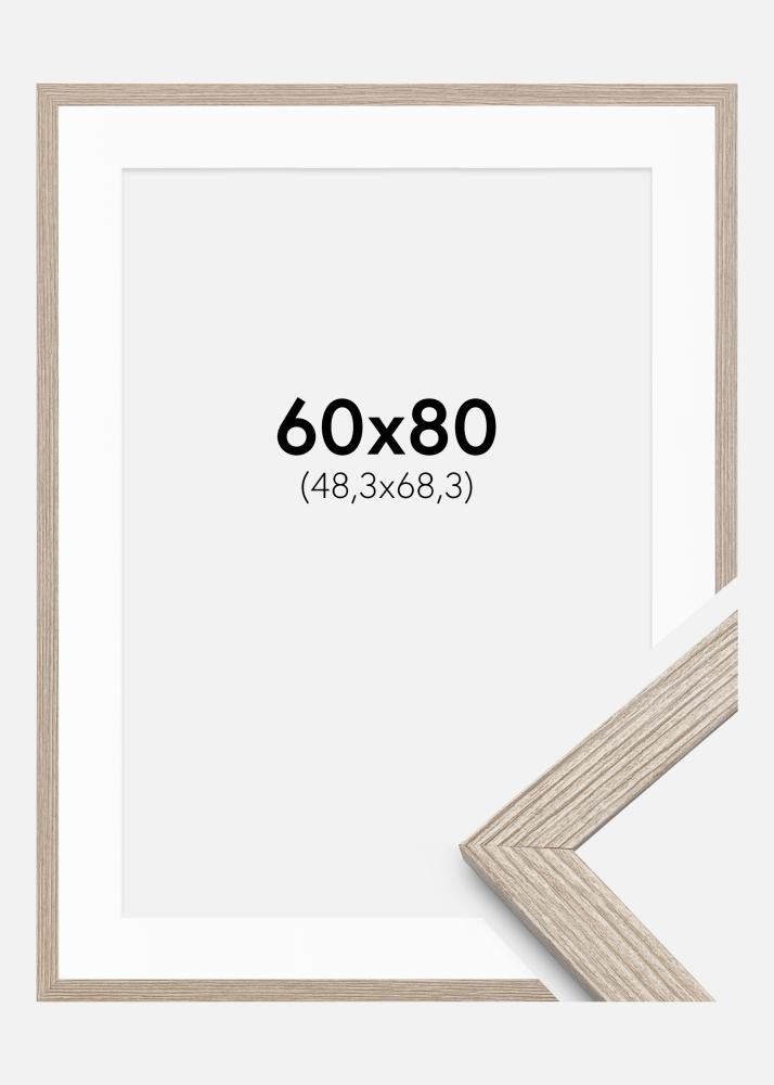 Moldura Stilren Greige Carvalho 60x80 cm - passe-partout Branco 49,3x69,3 cm