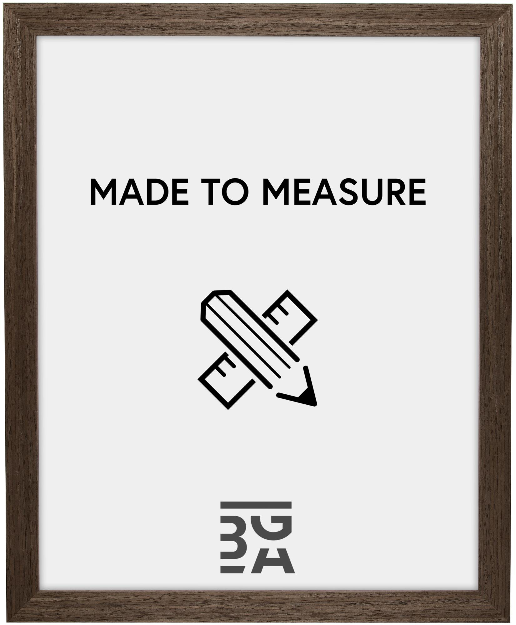 Esta elegante moldura de madeira de pinho tem um bonito acabamento em nogueira-claro. A profundidade da moldura é de 49 mm e a sua largura é de 29,9 mm. Ao comprar uma destas molduras, pode escolher as medidas que deseja, preenchendo a largura (máximo de 124 cm) e a altura (máximo de 160 cm).