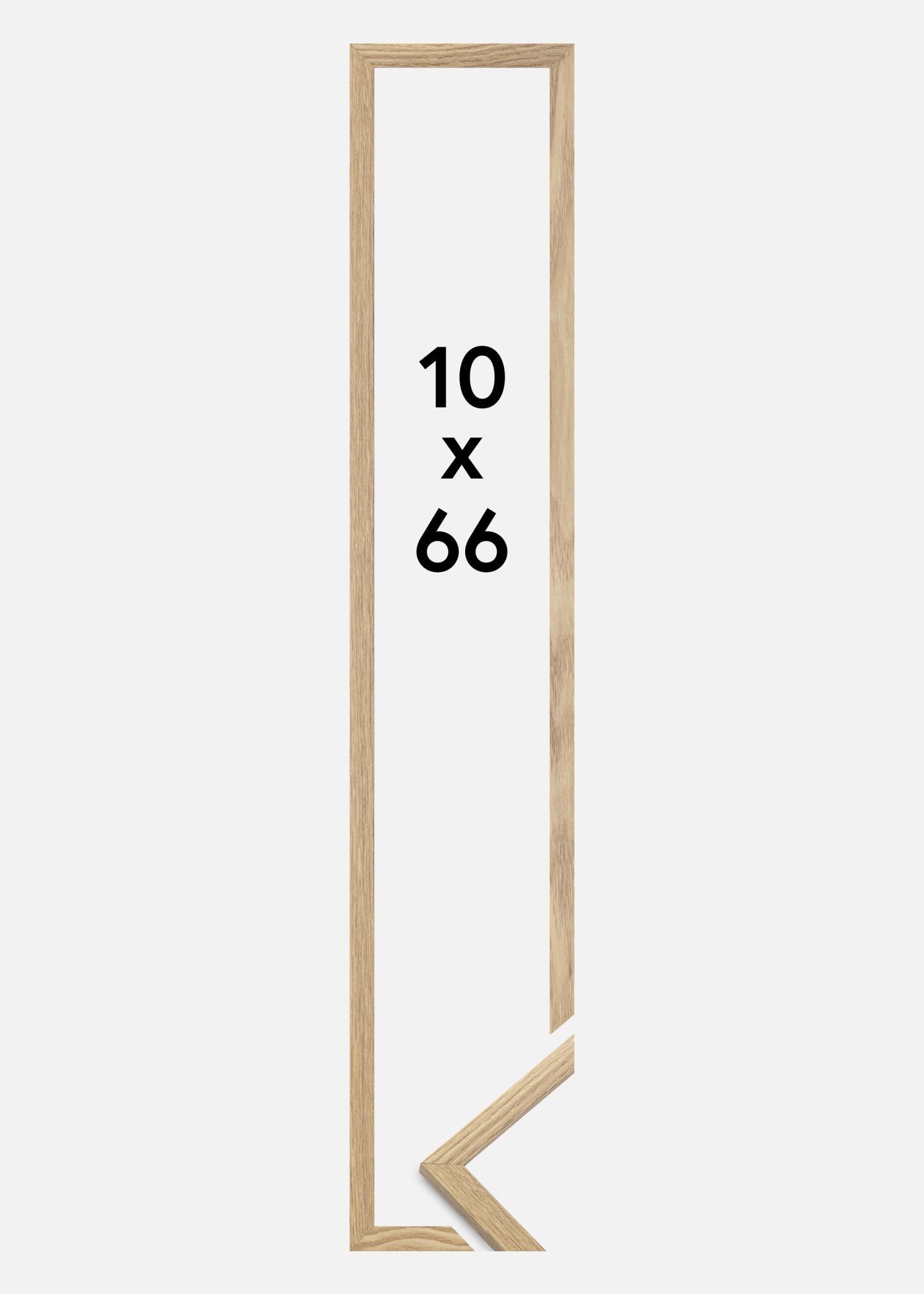A moldura é feita de material MDF com uma superfície folheada em carvalho e tem um perfil de moldura fino de 14 mm. Há bastante espaço para complementar suas imagens com um passe-partout luxuoso, graças à profundidade interna da moldura de 12 mm.