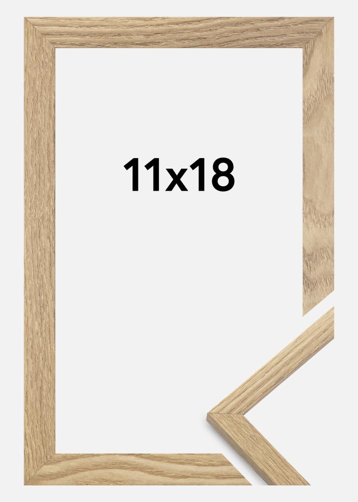 A moldura é feita de material MDF com uma superfície folheada em carvalho e tem um perfil de moldura fino de 14 mm. Há bastante espaço para complementar suas imagens com um passe-partout luxuoso, graças à profundidade interna da moldura de 12 mm.
