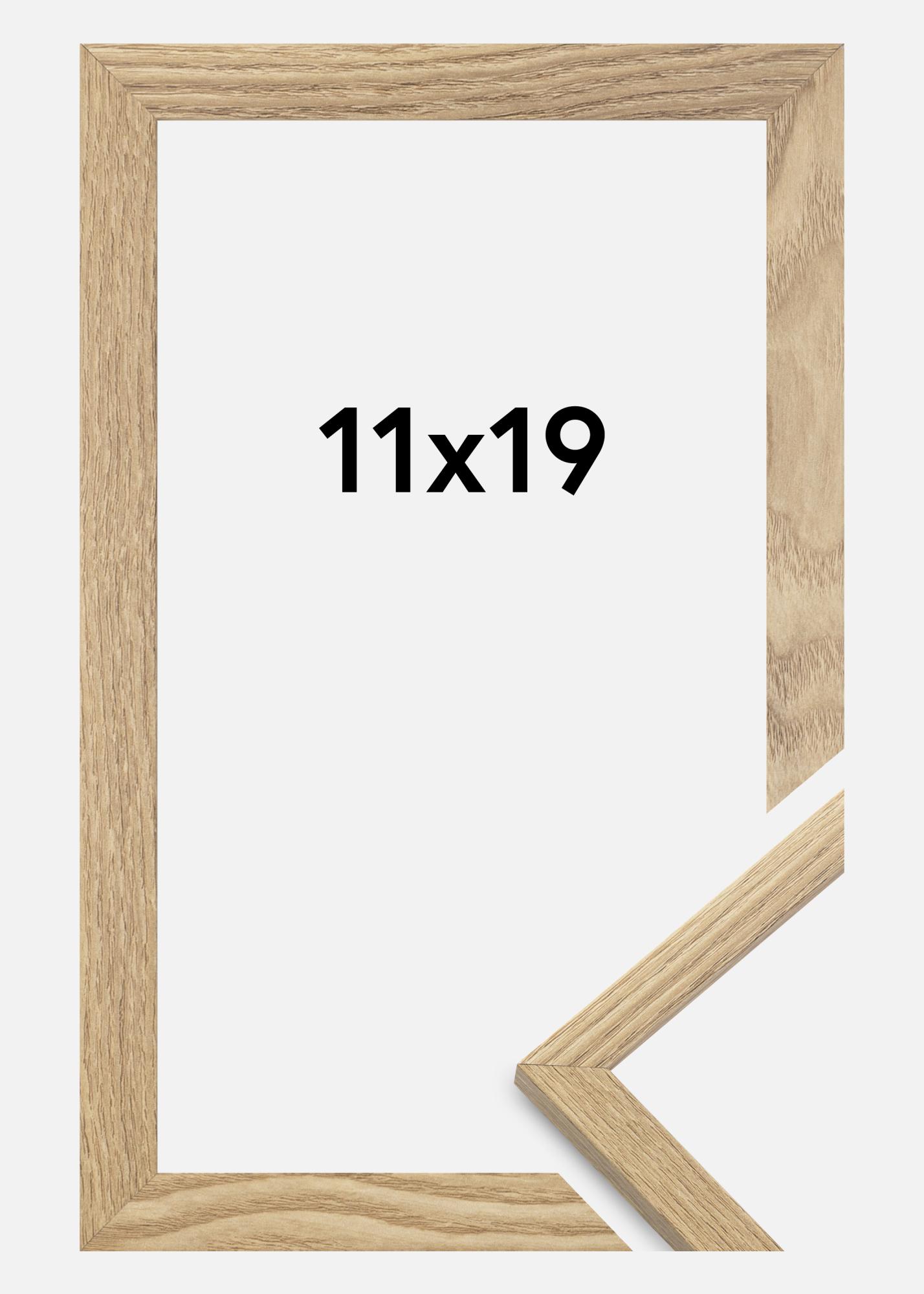 A moldura é feita de material MDF com uma superfície folheada em carvalho e tem um perfil de moldura fino de 14 mm. Há bastante espaço para complementar suas imagens com um passe-partout luxuoso, graças à profundidade interna da moldura de 12 mm.