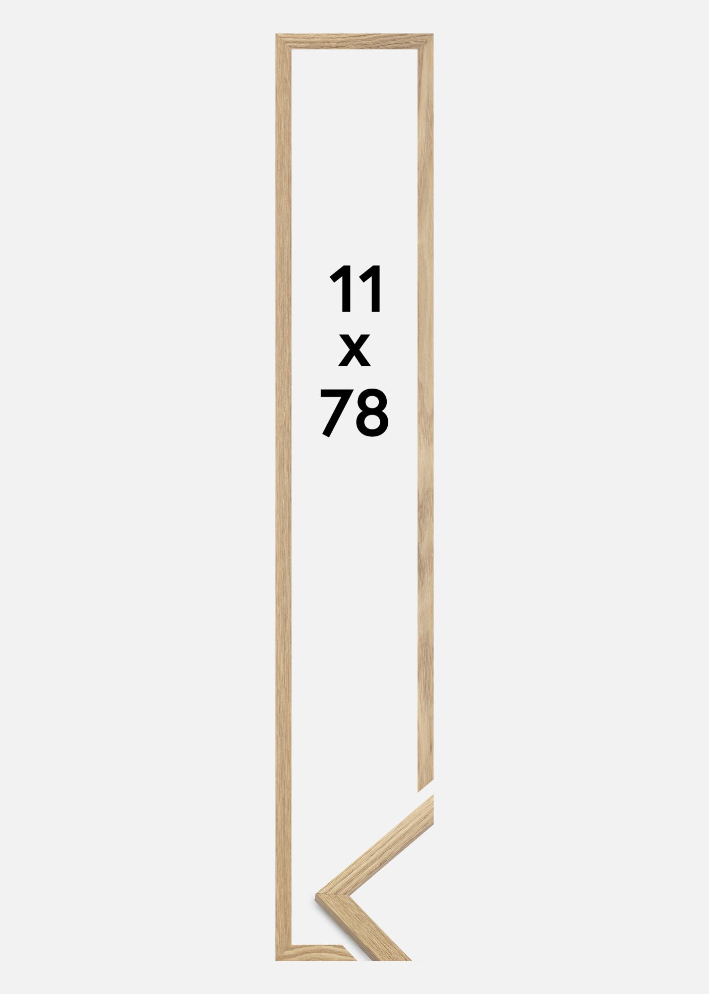 A moldura é feita de material MDF com uma superfície folheada em carvalho e tem um perfil de moldura fino de 14 mm. Há bastante espaço para complementar suas imagens com um passe-partout luxuoso, graças à profundidade interna da moldura de 12 mm.
