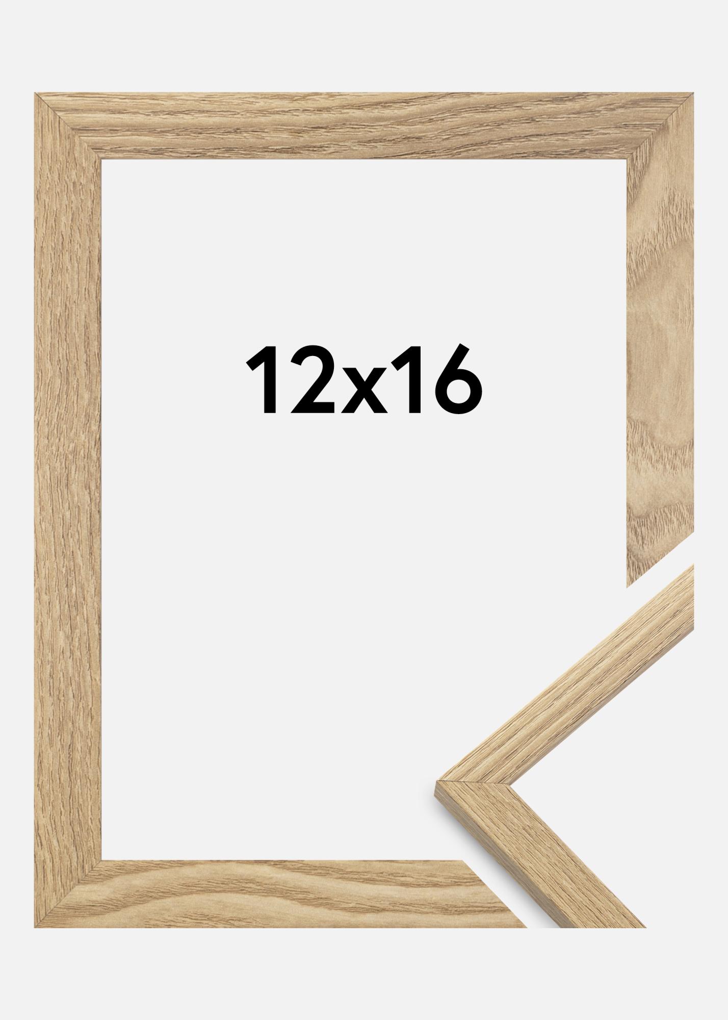 A moldura é feita de material MDF com uma superfície folheada em carvalho e tem um perfil de moldura fino de 14 mm. Há bastante espaço para complementar suas imagens com um passe-partout luxuoso, graças à profundidade interna da moldura de 12 mm.