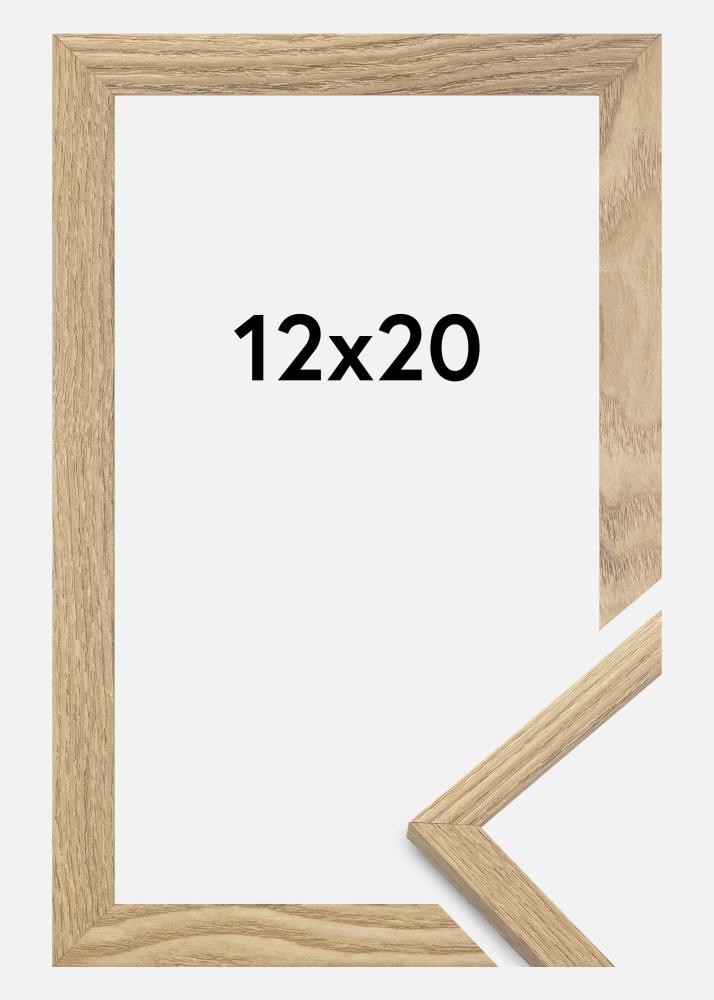 A moldura é feita de material MDF com uma superfície folheada em carvalho e tem um perfil de moldura fino de 14 mm. Há bastante espaço para complementar suas imagens com um passe-partout luxuoso, graças à profundidade interna da moldura de 12 mm.