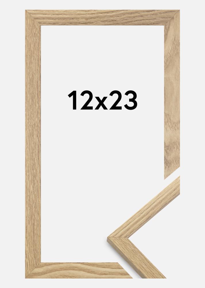 A moldura é feita de material MDF com uma superfície folheada em carvalho e tem um perfil de moldura fino de 14 mm. Há bastante espaço para complementar suas imagens com um passe-partout luxuoso, graças à profundidade interna da moldura de 12 mm.