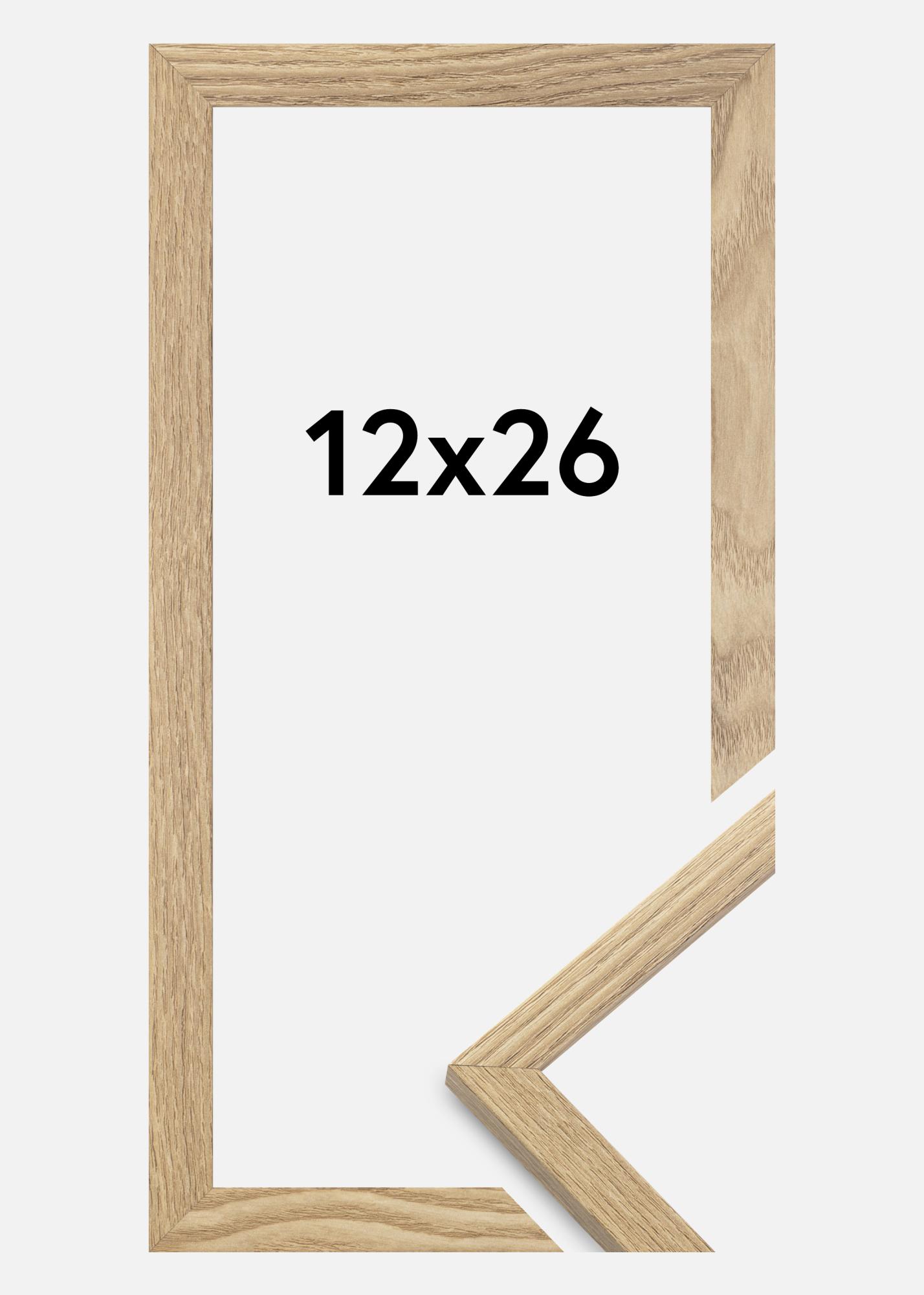 A moldura é feita de material MDF com uma superfície folheada em carvalho e tem um perfil de moldura fino de 14 mm. Há bastante espaço para complementar suas imagens com um passe-partout luxuoso, graças à profundidade interna da moldura de 12 mm.