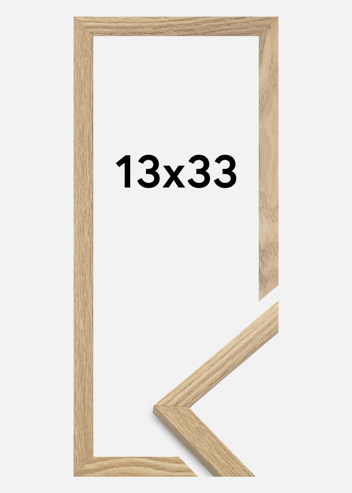 A moldura é feita de material MDF com uma superfície folheada em carvalho e tem um perfil de moldura fino de 14 mm. Há bastante espaço para complementar suas imagens com um passe-partout luxuoso, graças à profundidade interna da moldura de 12 mm.