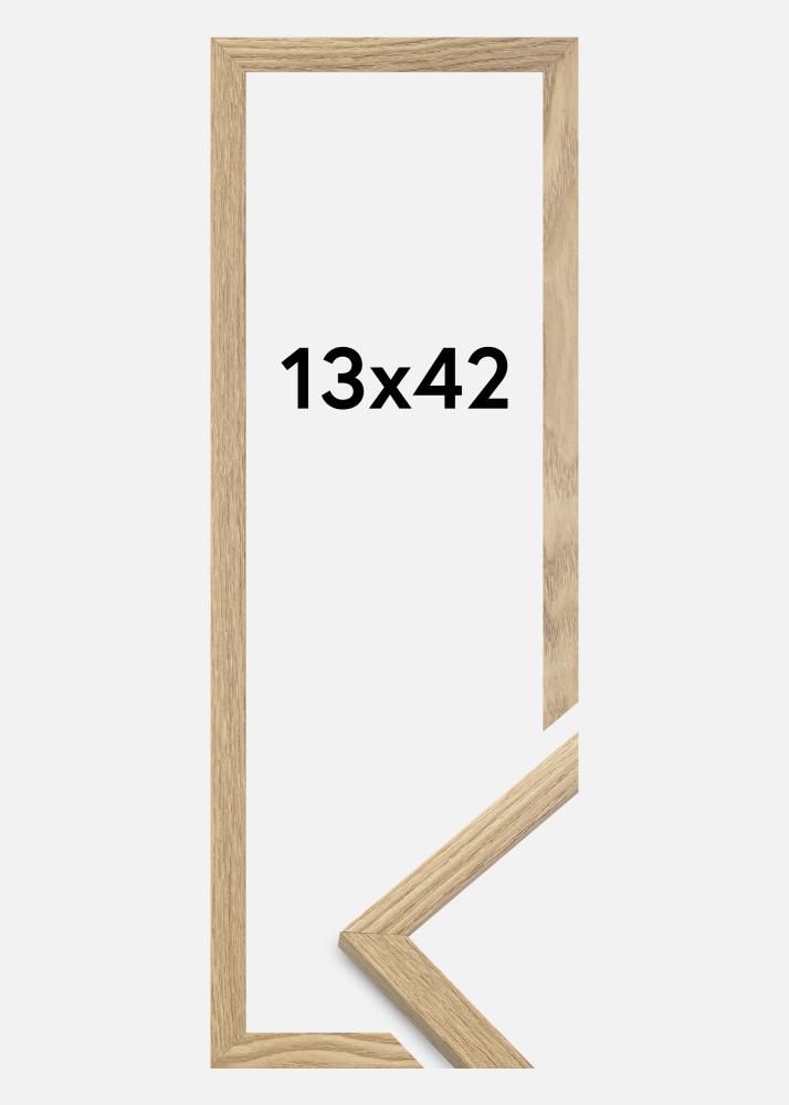 A moldura é feita de material MDF com uma superfície folheada em carvalho e tem um perfil de moldura fino de 14 mm. Há bastante espaço para complementar suas imagens com um passe-partout luxuoso, graças à profundidade interna da moldura de 12 mm.