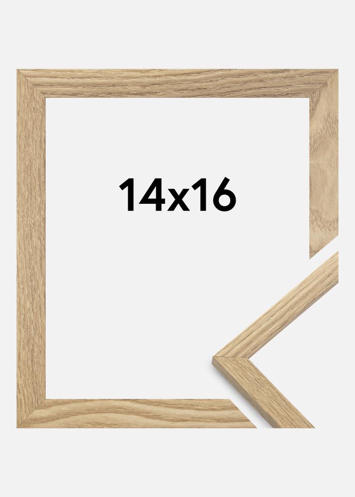 A moldura é feita de material MDF com uma superfície folheada em carvalho e tem um perfil de moldura fino de 14 mm. Há bastante espaço para complementar suas imagens com um passe-partout luxuoso, graças à profundidade interna da moldura de 12 mm.