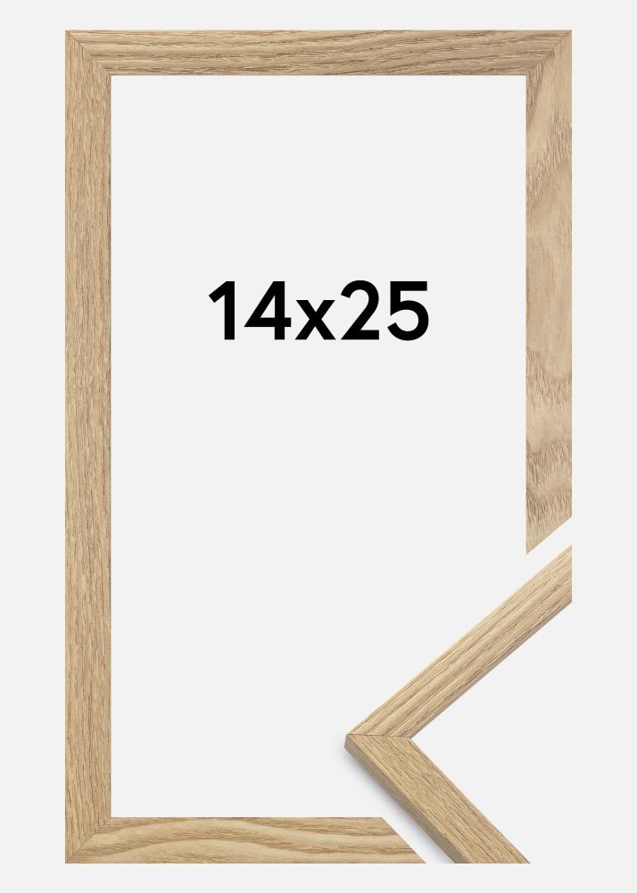 A moldura é feita de material MDF com uma superfície folheada em carvalho e tem um perfil de moldura fino de 14 mm. Há bastante espaço para complementar suas imagens com um passe-partout luxuoso, graças à profundidade interna da moldura de 12 mm.