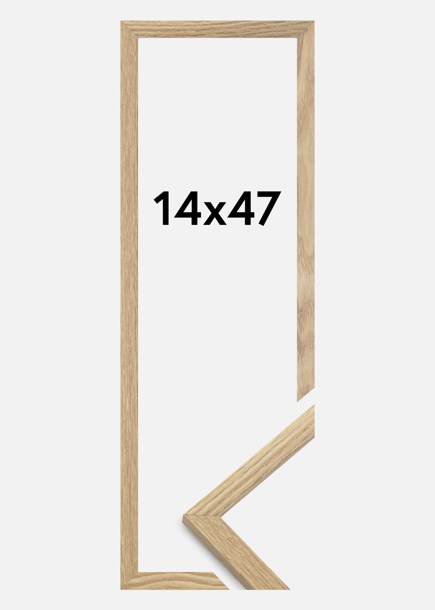 A moldura é feita de material MDF com uma superfície folheada em carvalho e tem um perfil de moldura fino de 14 mm. Há bastante espaço para complementar suas imagens com um passe-partout luxuoso, graças à profundidade interna da moldura de 12 mm.