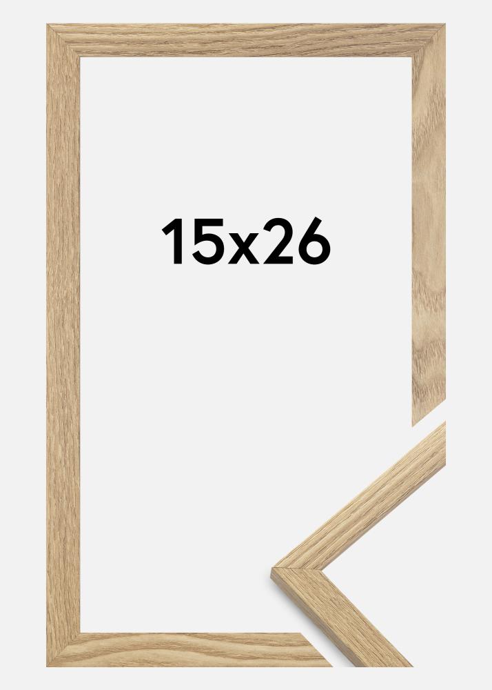 A moldura é feita de material MDF com uma superfície folheada em carvalho e tem um perfil de moldura fino de 14 mm. Há bastante espaço para complementar suas imagens com um passe-partout luxuoso, graças à profundidade interna da moldura de 12 mm.
