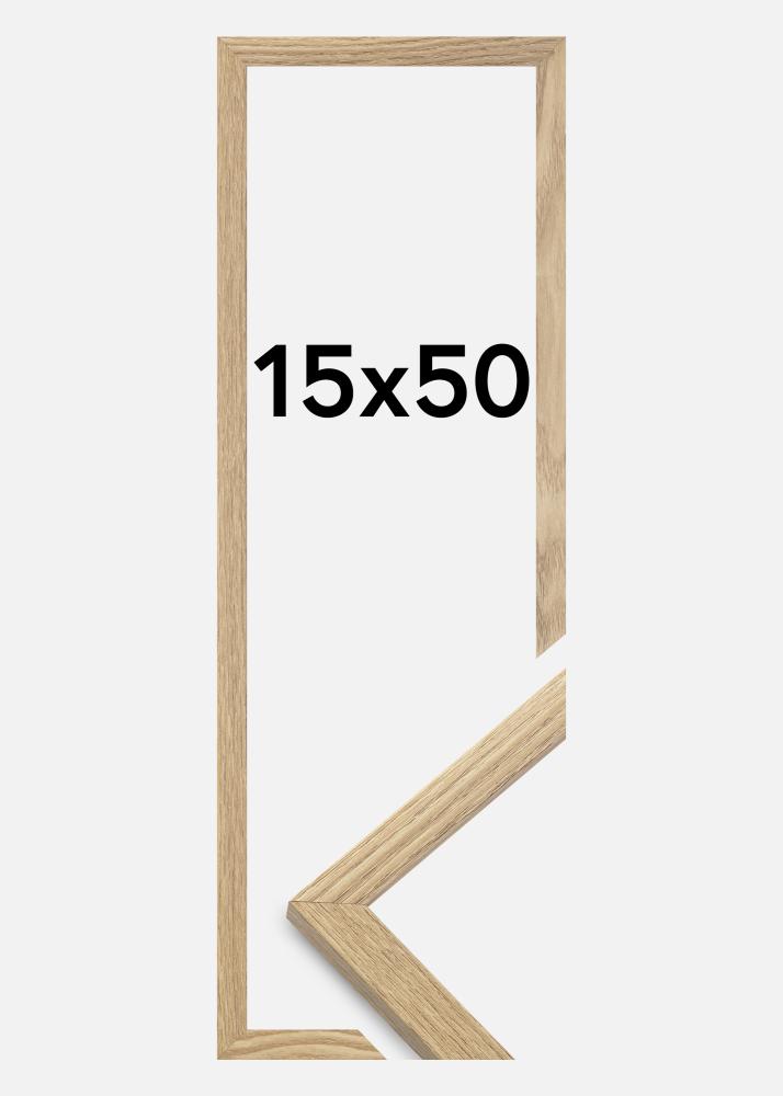 A moldura é feita de material MDF com uma superfície folheada em carvalho e tem um perfil de moldura fino de 14 mm. Há bastante espaço para complementar suas imagens com um passe-partout luxuoso, graças à profundidade interna da moldura de 12 mm.