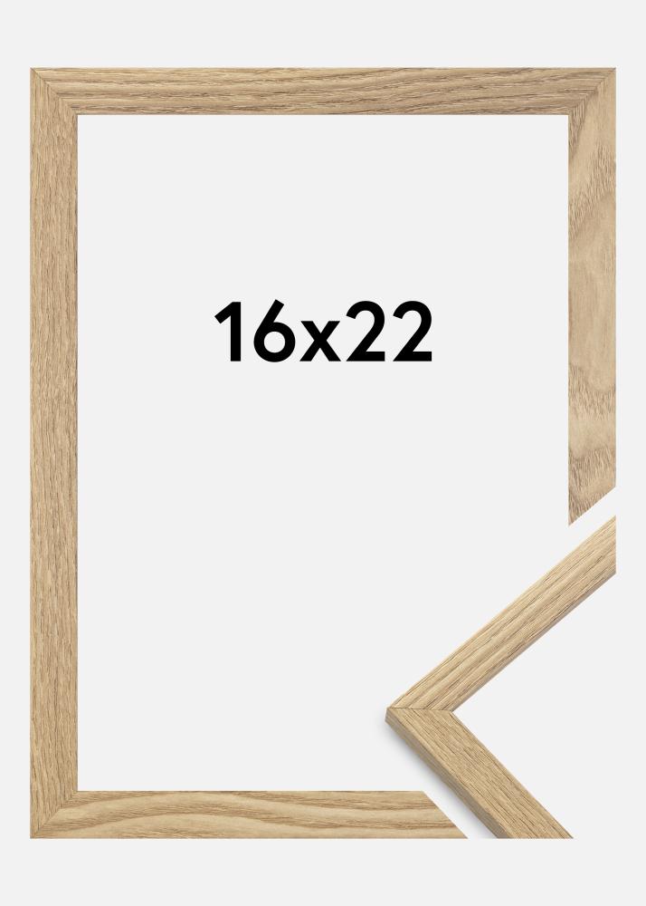 A moldura é feita de material MDF com uma superfície folheada em carvalho e tem um perfil de moldura fino de 14 mm. Há bastante espaço para complementar suas imagens com um passe-partout luxuoso, graças à profundidade interna da moldura de 12 mm.