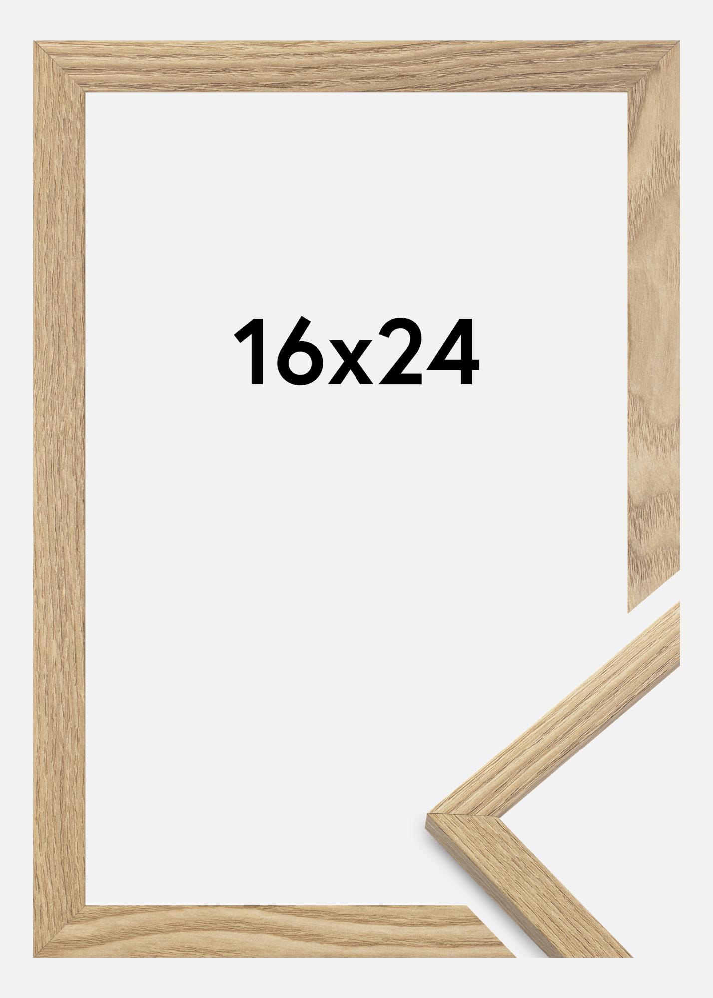 A moldura é feita de material MDF com uma superfície folheada em carvalho e tem um perfil de moldura fino de 14 mm. Há bastante espaço para complementar suas imagens com um passe-partout luxuoso, graças à profundidade interna da moldura de 12 mm.