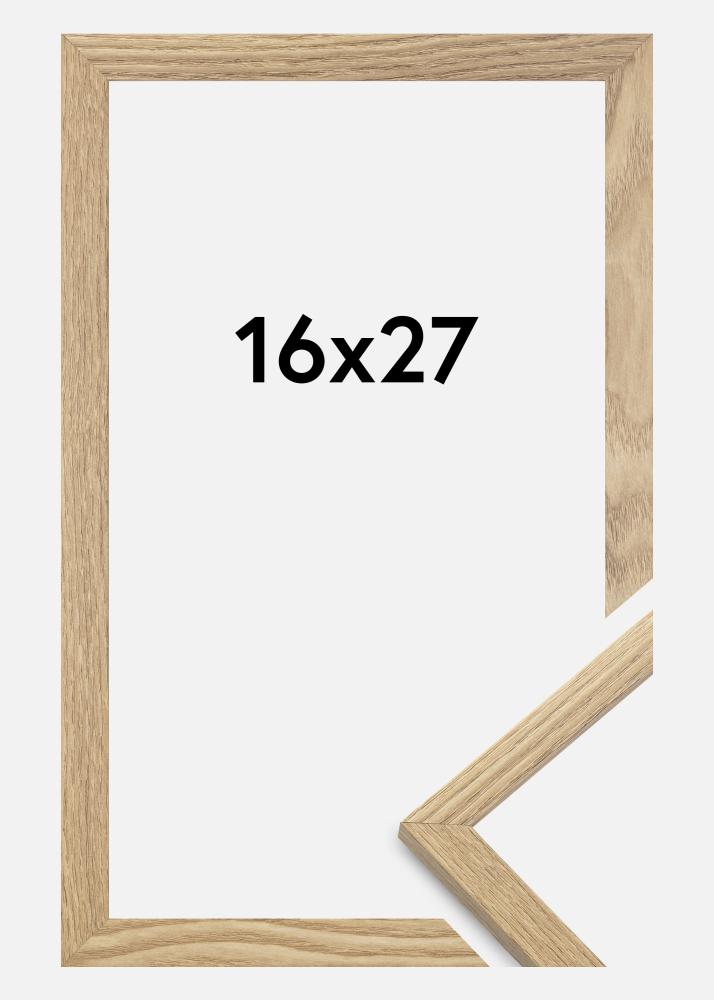 A moldura é feita de material MDF com uma superfície folheada em carvalho e tem um perfil de moldura fino de 14 mm. Há bastante espaço para complementar suas imagens com um passe-partout luxuoso, graças à profundidade interna da moldura de 12 mm.