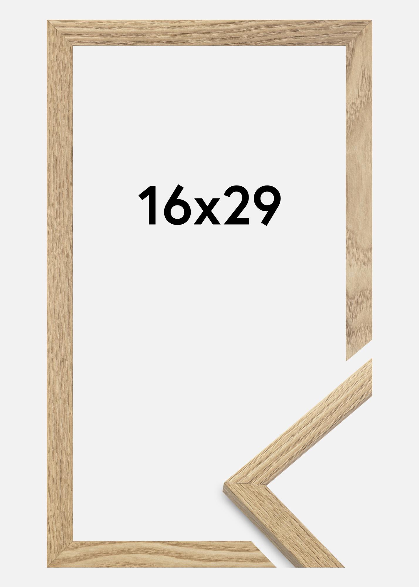 A moldura é feita de material MDF com uma superfície folheada em carvalho e tem um perfil de moldura fino de 14 mm. Há bastante espaço para complementar suas imagens com um passe-partout luxuoso, graças à profundidade interna da moldura de 12 mm.