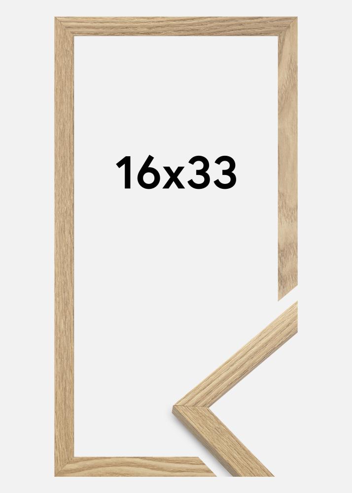 A moldura é feita de material MDF com uma superfície folheada em carvalho e tem um perfil de moldura fino de 14 mm. Há bastante espaço para complementar suas imagens com um passe-partout luxuoso, graças à profundidade interna da moldura de 12 mm.