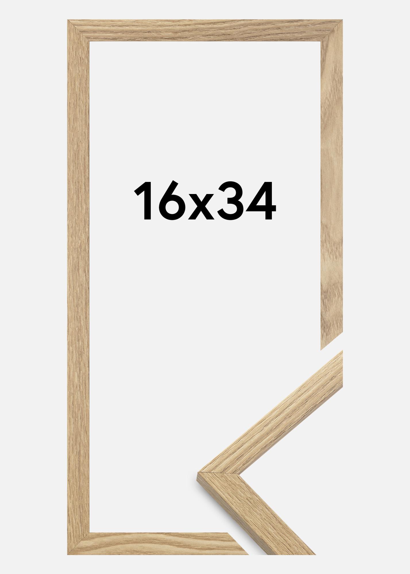 A moldura é feita de material MDF com uma superfície folheada em carvalho e tem um perfil de moldura fino de 14 mm. Há bastante espaço para complementar suas imagens com um passe-partout luxuoso, graças à profundidade interna da moldura de 12 mm.