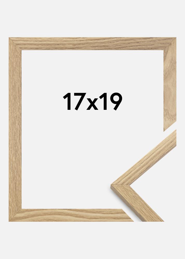 A moldura é feita de material MDF com uma superfície folheada em carvalho e tem um perfil de moldura fino de 14 mm. Há bastante espaço para complementar suas imagens com um passe-partout luxuoso, graças à profundidade interna da moldura de 12 mm.