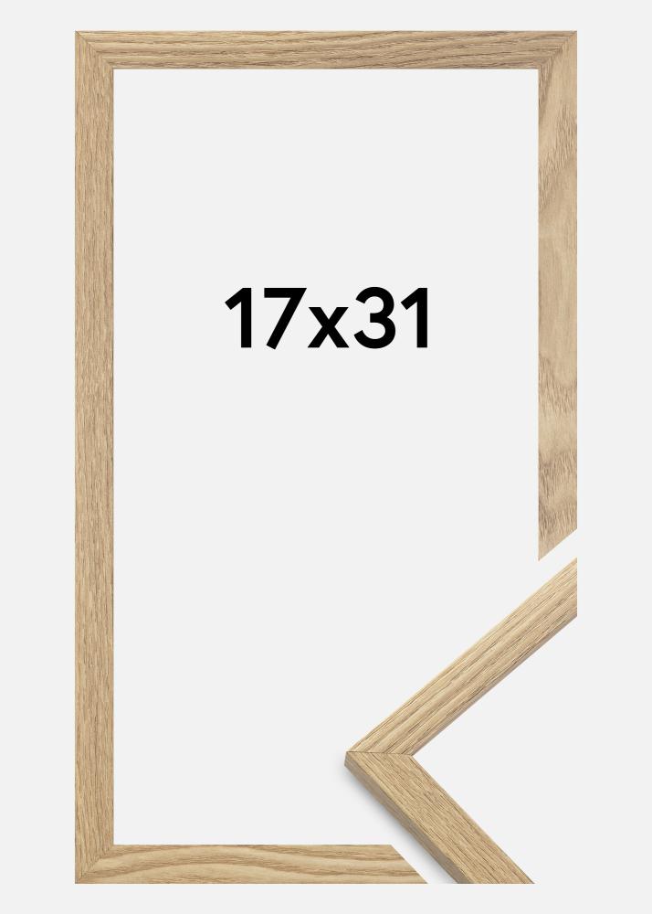 A moldura é feita de material MDF com uma superfície folheada em carvalho e tem um perfil de moldura fino de 14 mm. Há bastante espaço para complementar suas imagens com um passe-partout luxuoso, graças à profundidade interna da moldura de 12 mm.