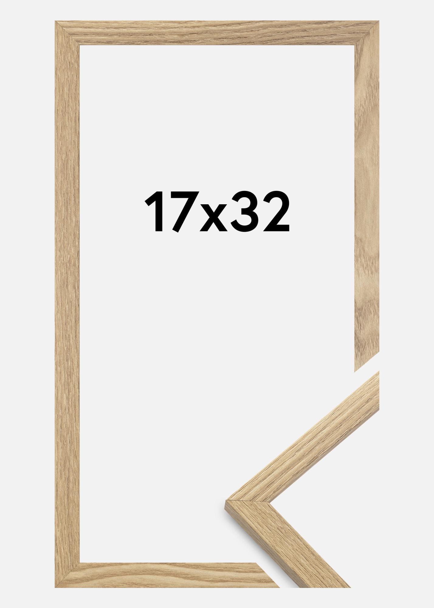 A moldura é feita de material MDF com uma superfície folheada em carvalho e tem um perfil de moldura fino de 14 mm. Há bastante espaço para complementar suas imagens com um passe-partout luxuoso, graças à profundidade interna da moldura de 12 mm.