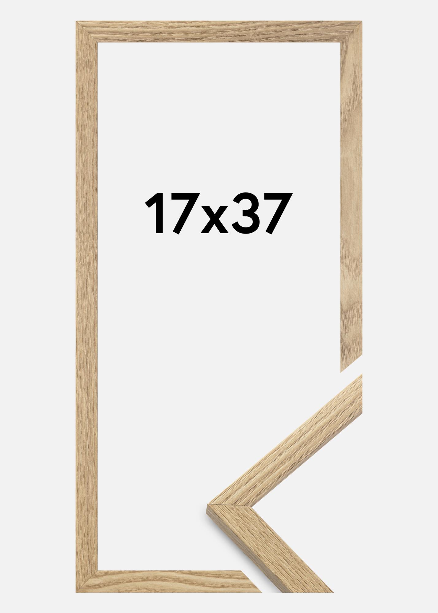 A moldura é feita de material MDF com uma superfície folheada em carvalho e tem um perfil de moldura fino de 14 mm. Há bastante espaço para complementar suas imagens com um passe-partout luxuoso, graças à profundidade interna da moldura de 12 mm.
