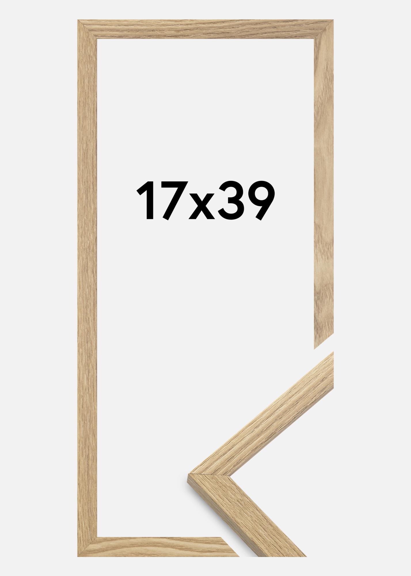 A moldura é feita de material MDF com uma superfície folheada em carvalho e tem um perfil de moldura fino de 14 mm. Há bastante espaço para complementar suas imagens com um passe-partout luxuoso, graças à profundidade interna da moldura de 12 mm.