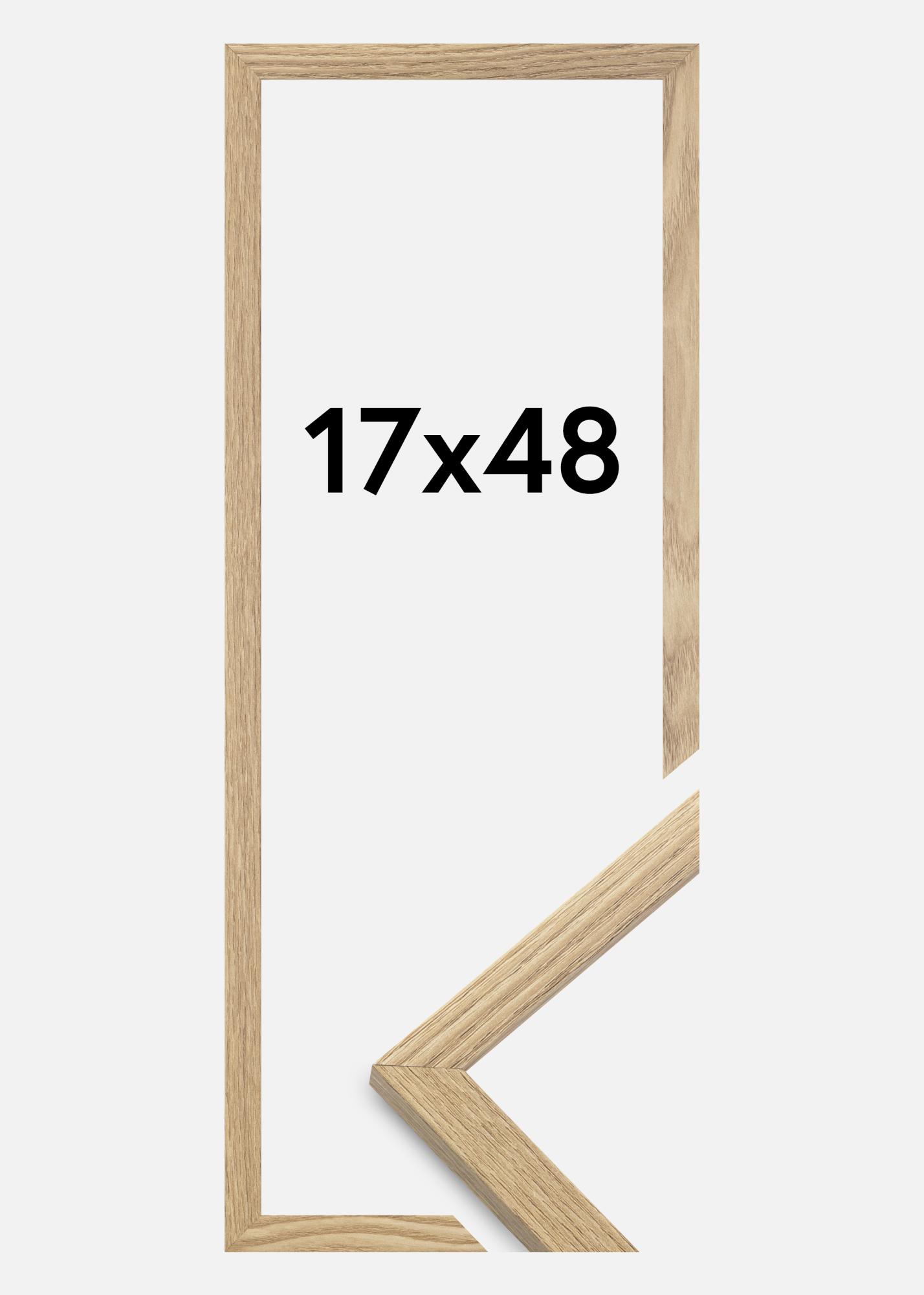 A moldura é feita de material MDF com uma superfície folheada em carvalho e tem um perfil de moldura fino de 14 mm. Há bastante espaço para complementar suas imagens com um passe-partout luxuoso, graças à profundidade interna da moldura de 12 mm.
