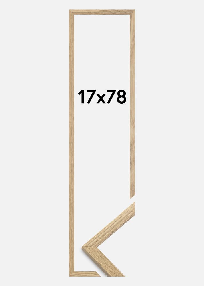 A moldura é feita de material MDF com uma superfície folheada em carvalho e tem um perfil de moldura fino de 14 mm. Há bastante espaço para complementar suas imagens com um passe-partout luxuoso, graças à profundidade interna da moldura de 12 mm.
