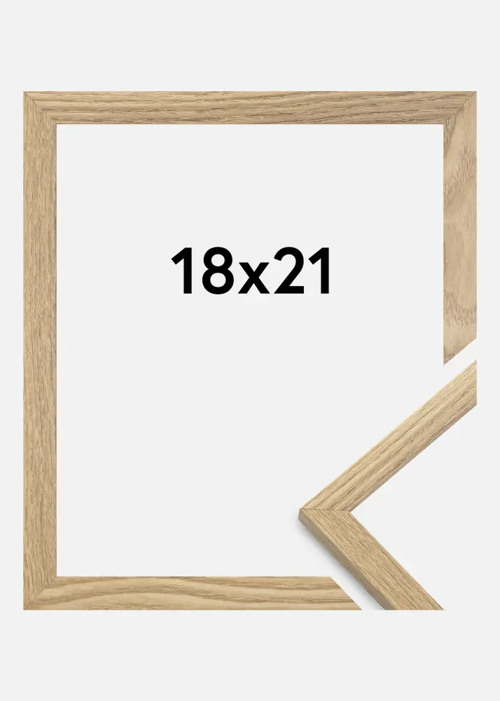 A moldura é feita de material MDF com uma superfície folheada em carvalho e tem um perfil de moldura fino de 14 mm. Há bastante espaço para complementar suas imagens com um passe-partout luxuoso, graças à profundidade interna da moldura de 12 mm.
