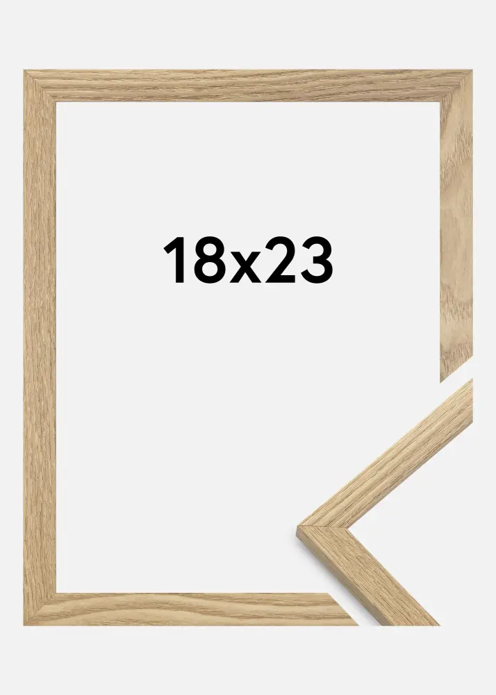 A moldura é feita de material MDF com uma superfície folheada em carvalho e tem um perfil de moldura fino de 14 mm. Há bastante espaço para complementar suas imagens com um passe-partout luxuoso, graças à profundidade interna da moldura de 12 mm.
