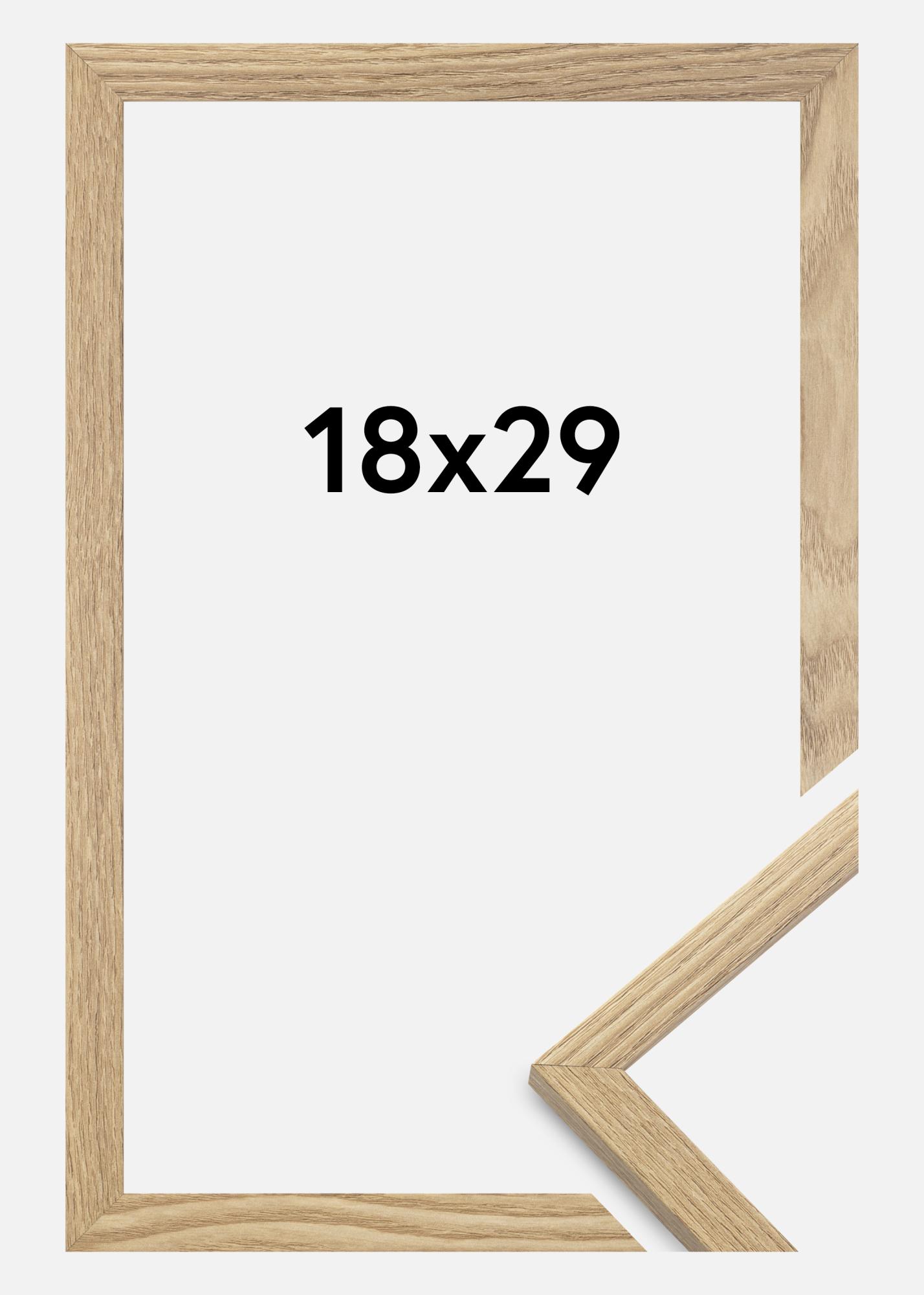 A moldura é feita de material MDF com uma superfície folheada em carvalho e tem um perfil de moldura fino de 14 mm. Há bastante espaço para complementar suas imagens com um passe-partout luxuoso, graças à profundidade interna da moldura de 12 mm.