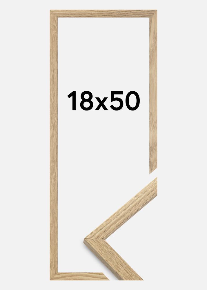 A moldura é feita de material MDF com uma superfície folheada em carvalho e tem um perfil de moldura fino de 14 mm. Há bastante espaço para complementar suas imagens com um passe-partout luxuoso, graças à profundidade interna da moldura de 12 mm.