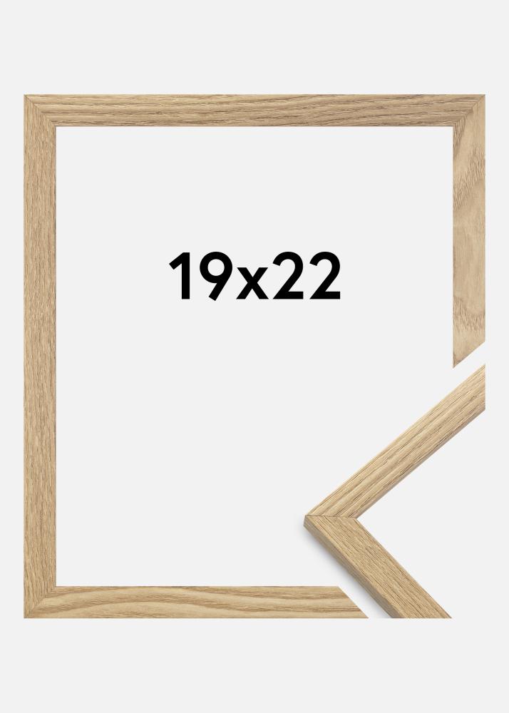 A moldura é feita de material MDF com uma superfície folheada em carvalho e tem um perfil de moldura fino de 14 mm. Há bastante espaço para complementar suas imagens com um passe-partout luxuoso, graças à profundidade interna da moldura de 12 mm.