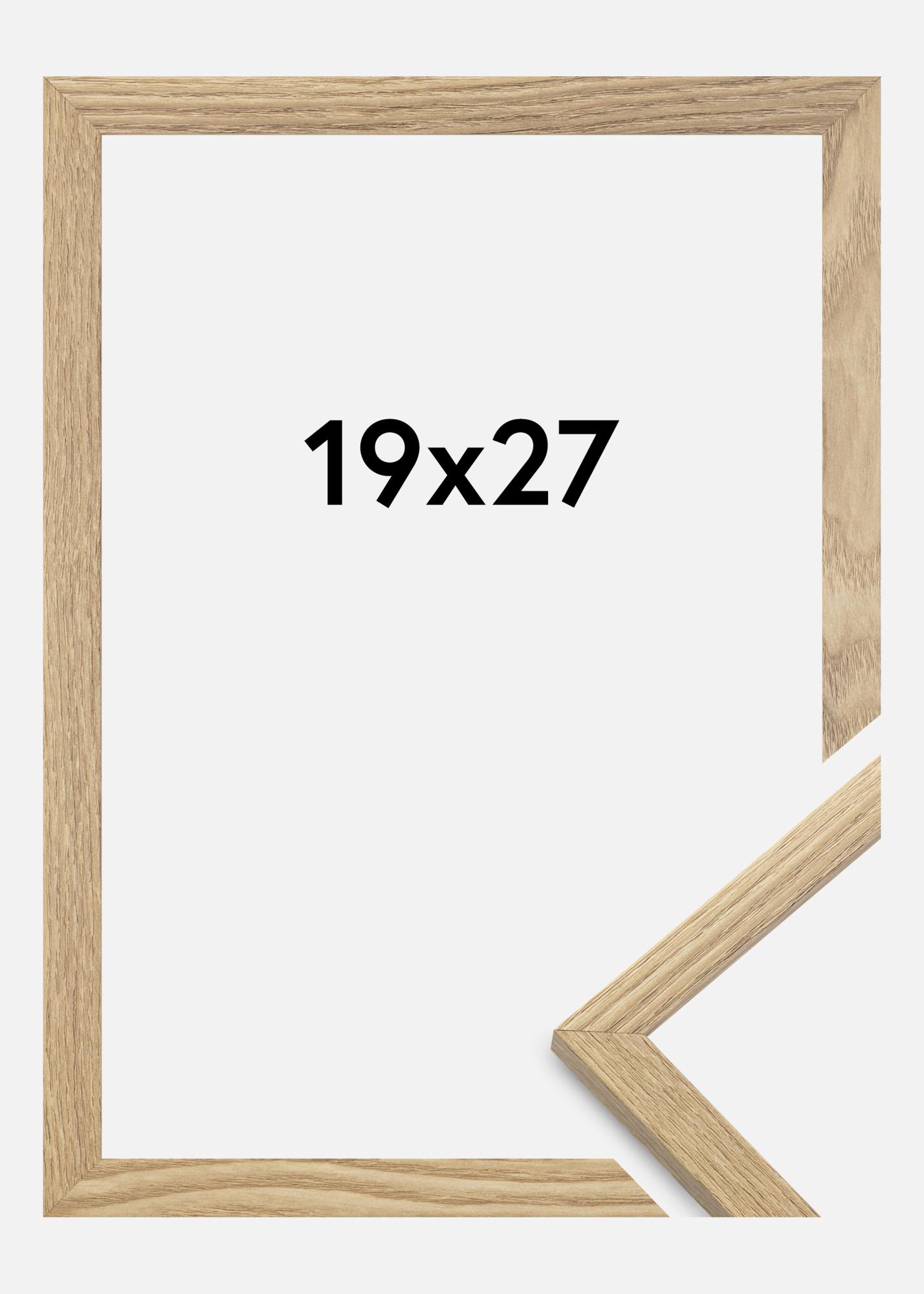 A moldura é feita de material MDF com uma superfície folheada em carvalho e tem um perfil de moldura fino de 14 mm. Há bastante espaço para complementar suas imagens com um passe-partout luxuoso, graças à profundidade interna da moldura de 12 mm.
