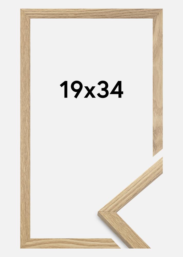A moldura é feita de material MDF com uma superfície folheada em carvalho e tem um perfil de moldura fino de 14 mm. Há bastante espaço para complementar suas imagens com um passe-partout luxuoso, graças à profundidade interna da moldura de 12 mm.