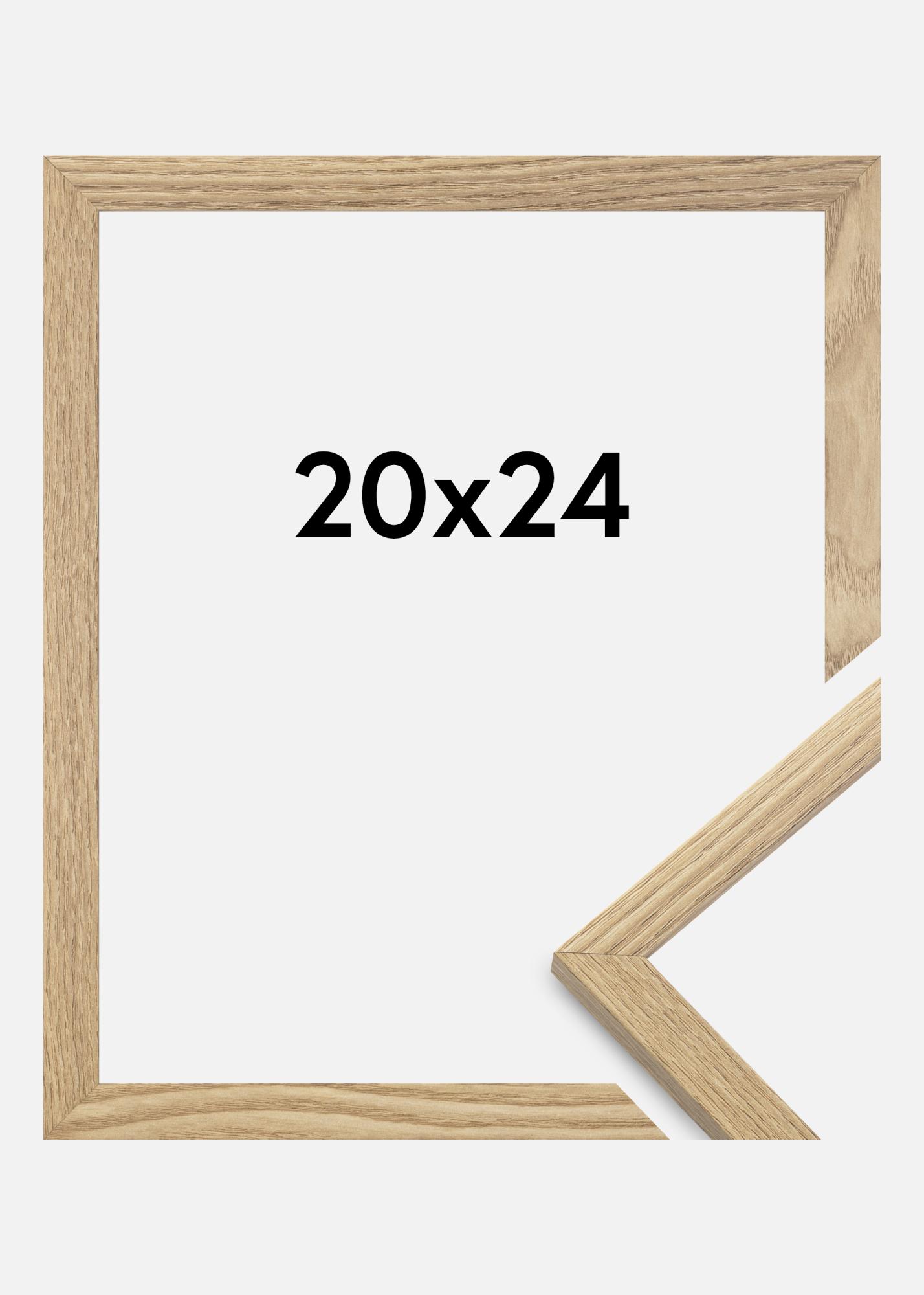 A moldura é feita de material MDF com uma superfície folheada em carvalho e tem um perfil de moldura fino de 14 mm. Há bastante espaço para complementar suas imagens com um passe-partout luxuoso, graças à profundidade interna da moldura de 12 mm.