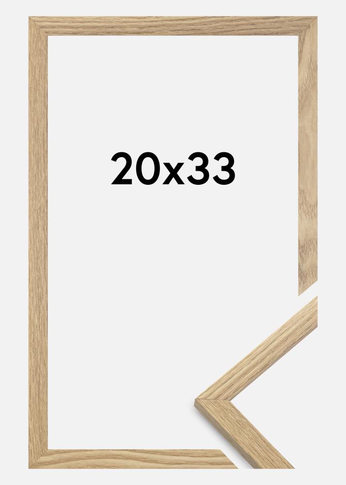 A moldura é feita de material MDF com uma superfície folheada em carvalho e tem um perfil de moldura fino de 14 mm. Há bastante espaço para complementar suas imagens com um passe-partout luxuoso, graças à profundidade interna da moldura de 12 mm.