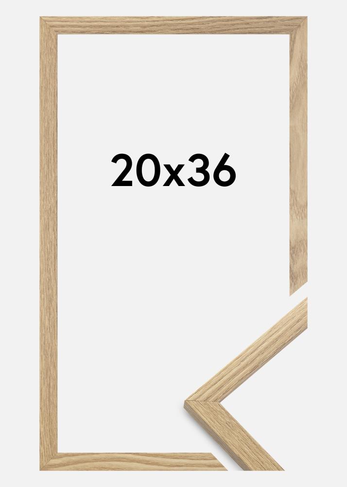 A moldura é feita de material MDF com uma superfície folheada em carvalho e tem um perfil de moldura fino de 14 mm. Há bastante espaço para complementar suas imagens com um passe-partout luxuoso, graças à profundidade interna da moldura de 12 mm.