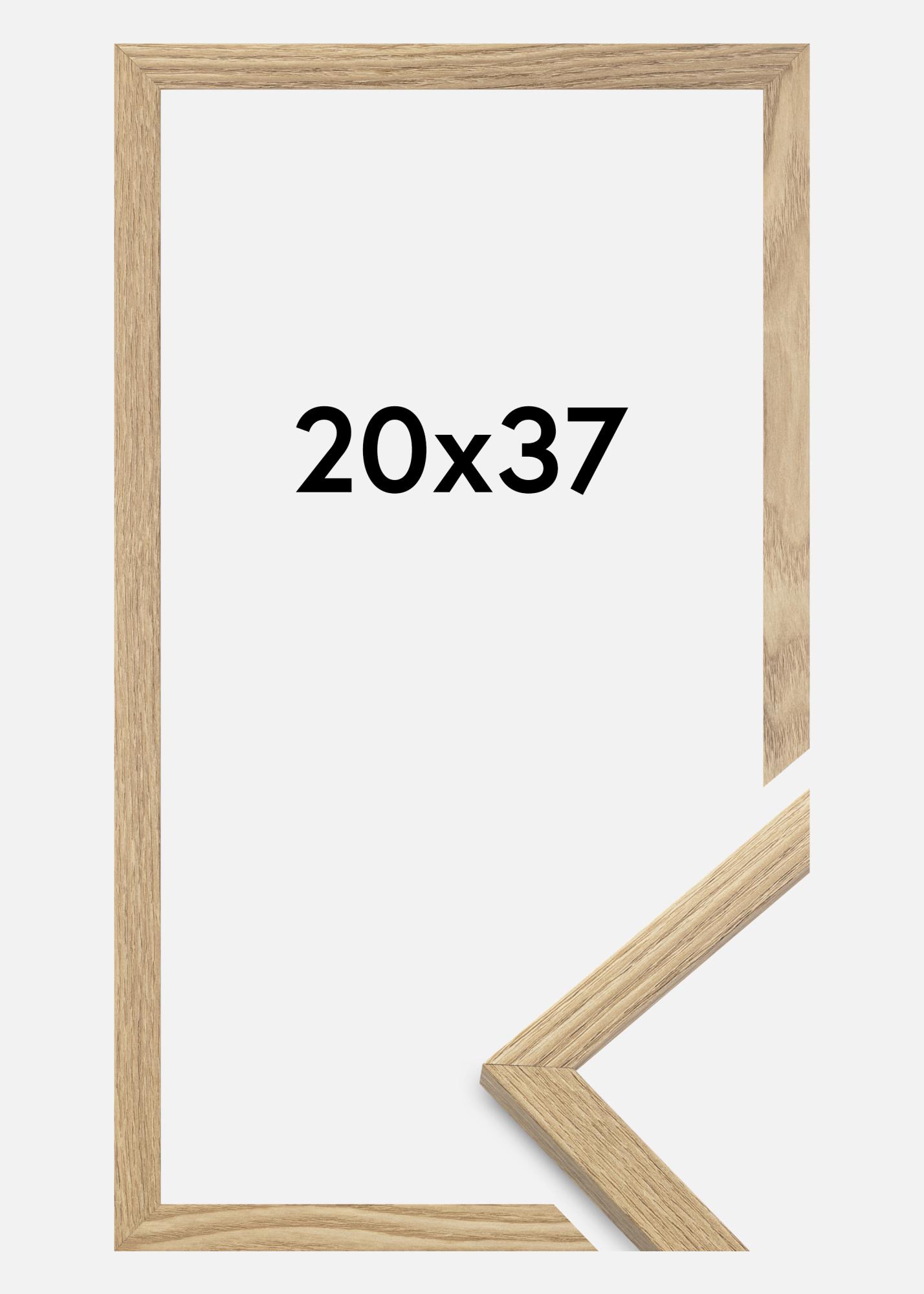 A moldura é feita de material MDF com uma superfície folheada em carvalho e tem um perfil de moldura fino de 14 mm. Há bastante espaço para complementar suas imagens com um passe-partout luxuoso, graças à profundidade interna da moldura de 12 mm.