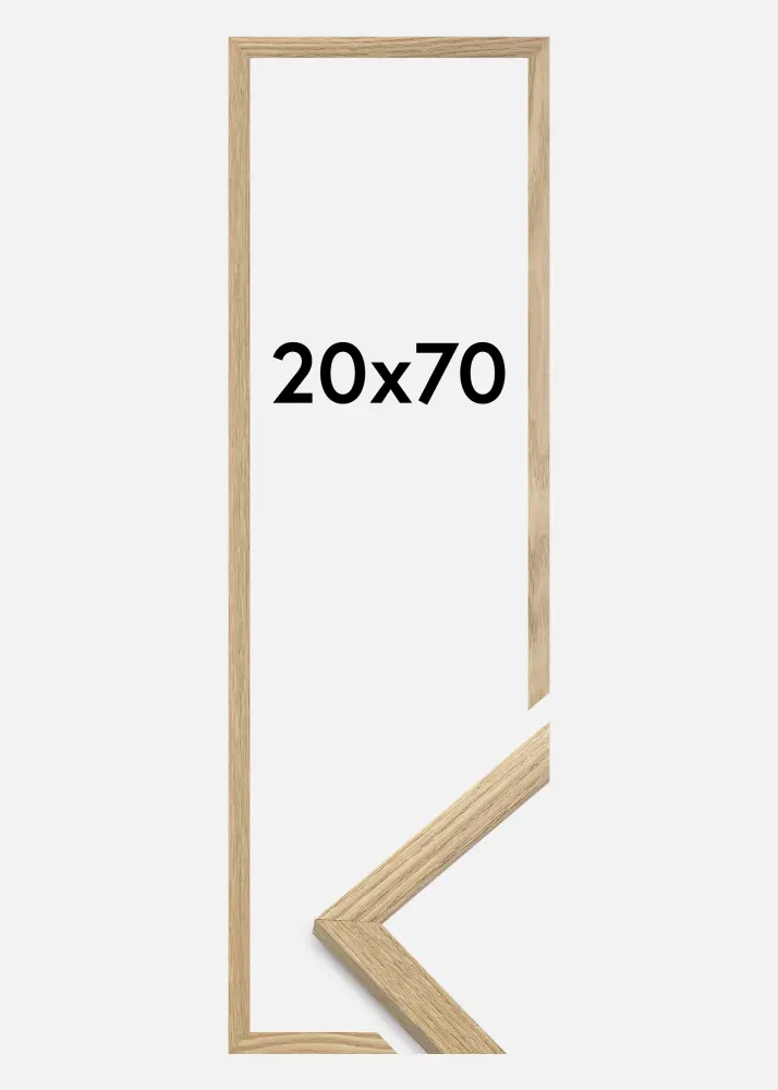A moldura é feita de material MDF com uma superfície folheada em carvalho e tem um perfil de moldura fino de 14 mm. Há bastante espaço para complementar suas imagens com um passe-partout luxuoso, graças à profundidade interna da moldura de 12 mm.