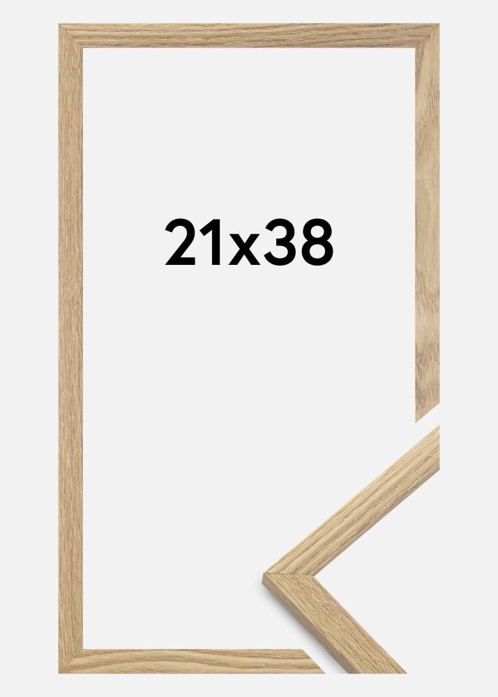 A moldura é feita de material MDF com uma superfície folheada em carvalho e tem um perfil de moldura fino de 14 mm. Há bastante espaço para complementar suas imagens com um passe-partout luxuoso, graças à profundidade interna da moldura de 12 mm.