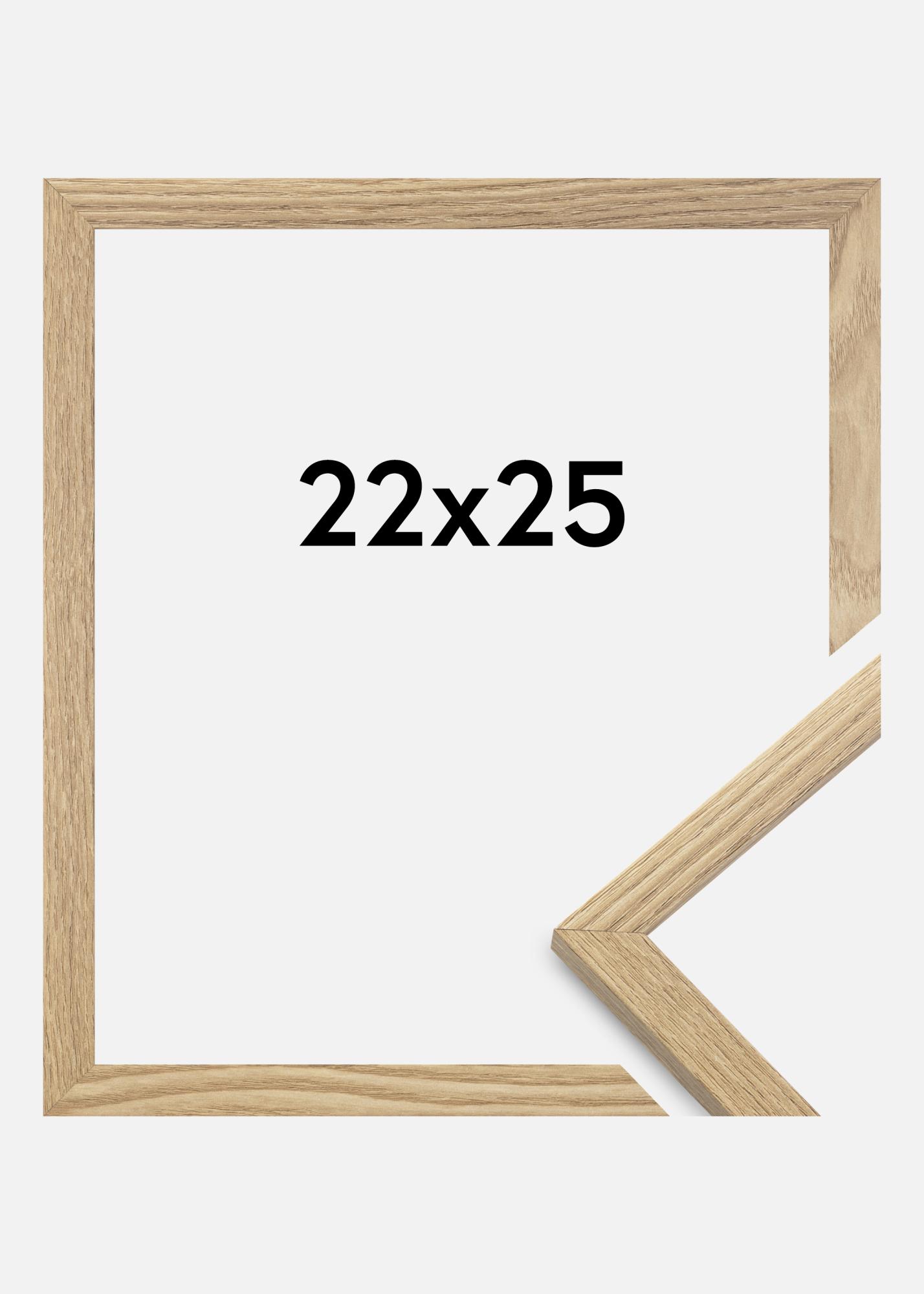A moldura é feita de material MDF com uma superfície folheada em carvalho e tem um perfil de moldura fino de 14 mm. Há bastante espaço para complementar suas imagens com um passe-partout luxuoso, graças à profundidade interna da moldura de 12 mm.