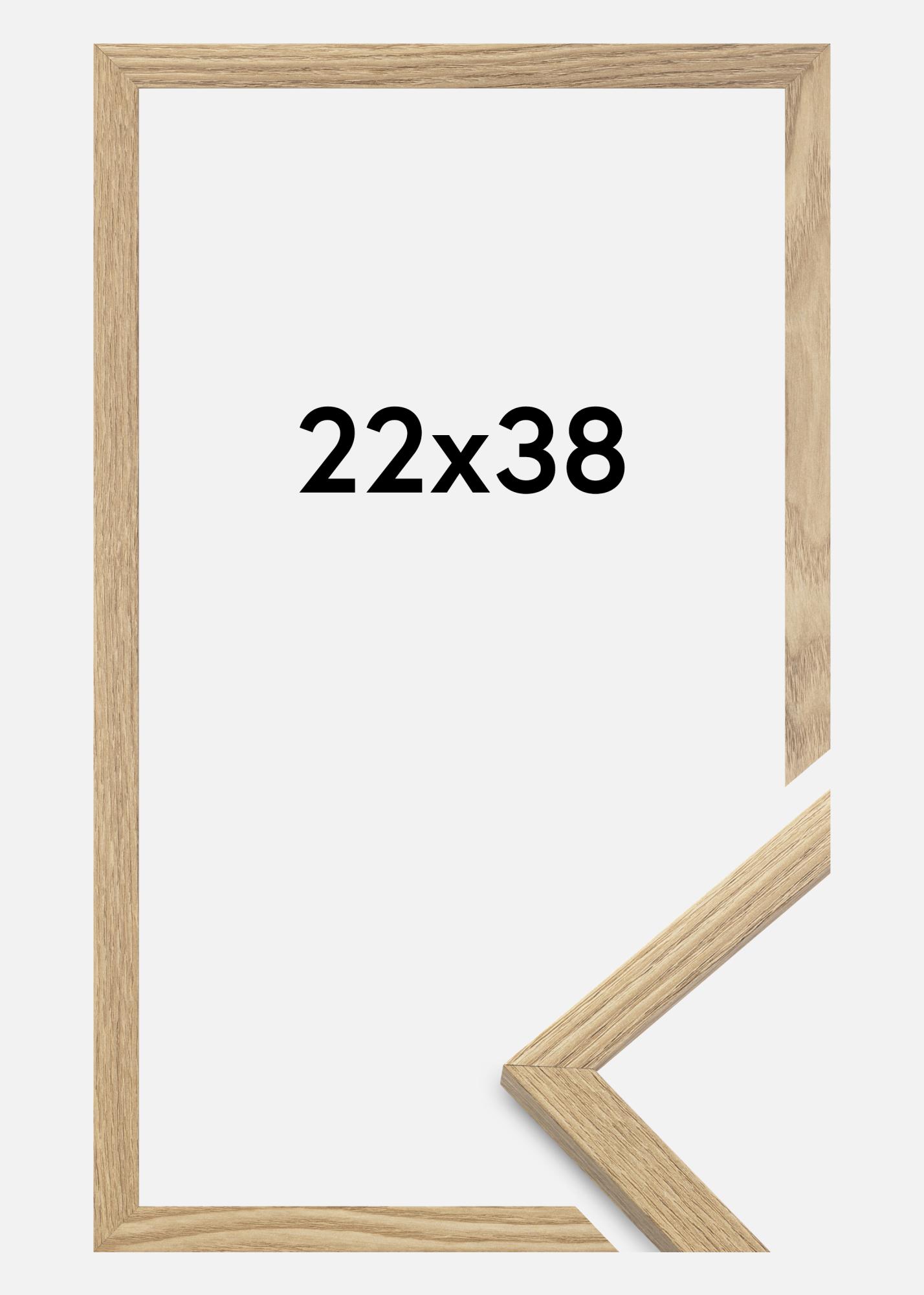 A moldura é feita de material MDF com uma superfície folheada em carvalho e tem um perfil de moldura fino de 14 mm. Há bastante espaço para complementar suas imagens com um passe-partout luxuoso, graças à profundidade interna da moldura de 12 mm.
