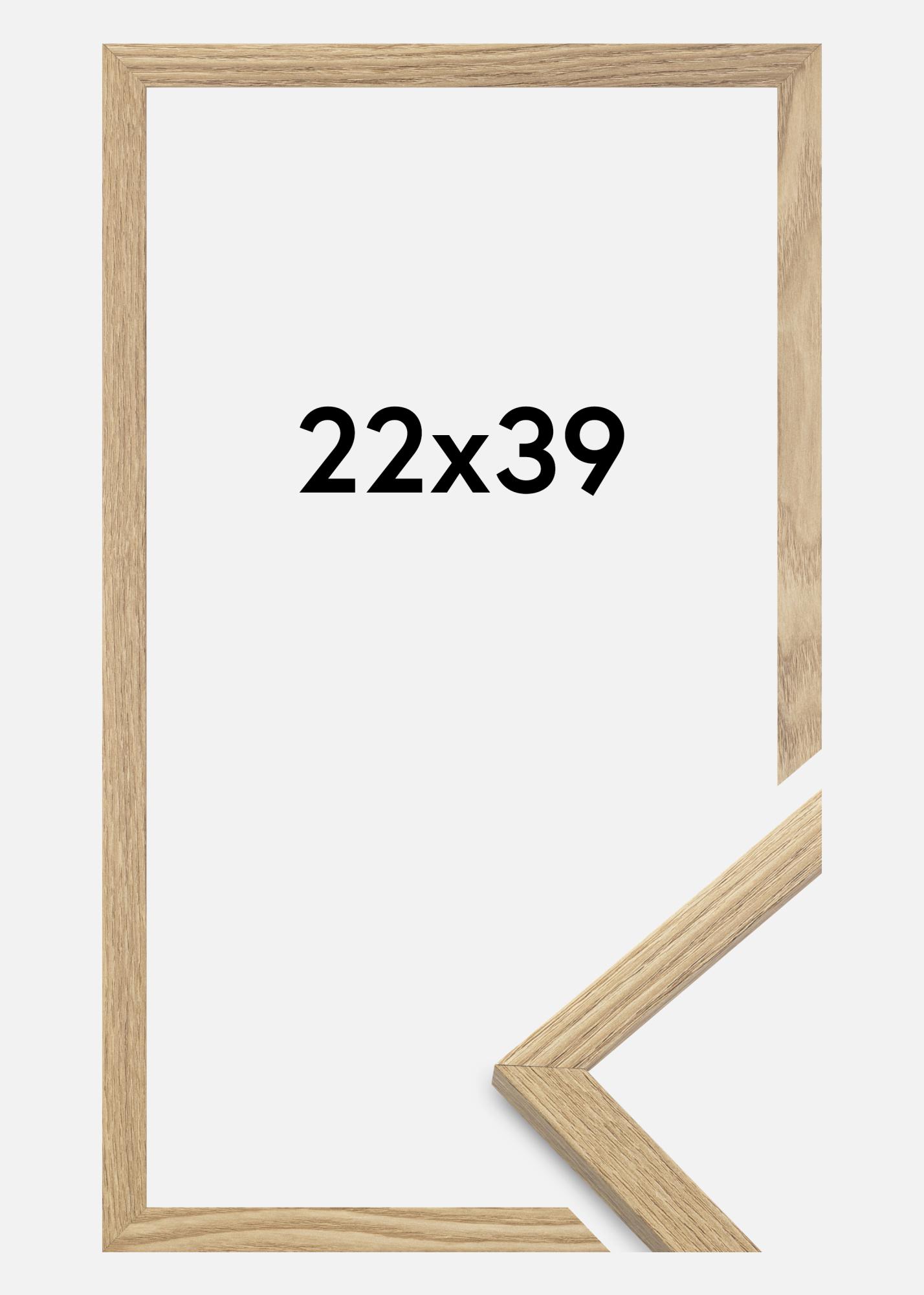 A moldura é feita de material MDF com uma superfície folheada em carvalho e tem um perfil de moldura fino de 14 mm. Há bastante espaço para complementar suas imagens com um passe-partout luxuoso, graças à profundidade interna da moldura de 12 mm.