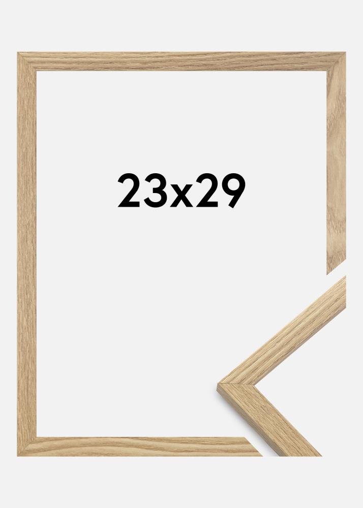 A moldura é feita de material MDF com uma superfície folheada em carvalho e tem um perfil de moldura fino de 14 mm. Há bastante espaço para complementar suas imagens com um passe-partout luxuoso, graças à profundidade interna da moldura de 12 mm.