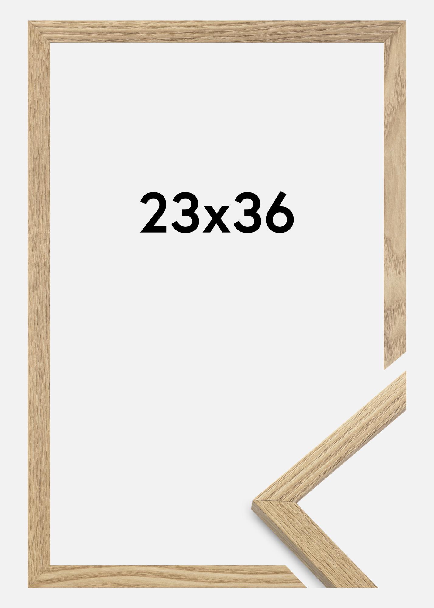A moldura é feita de material MDF com uma superfície folheada em carvalho e tem um perfil de moldura fino de 14 mm. Há bastante espaço para complementar suas imagens com um passe-partout luxuoso, graças à profundidade interna da moldura de 12 mm.